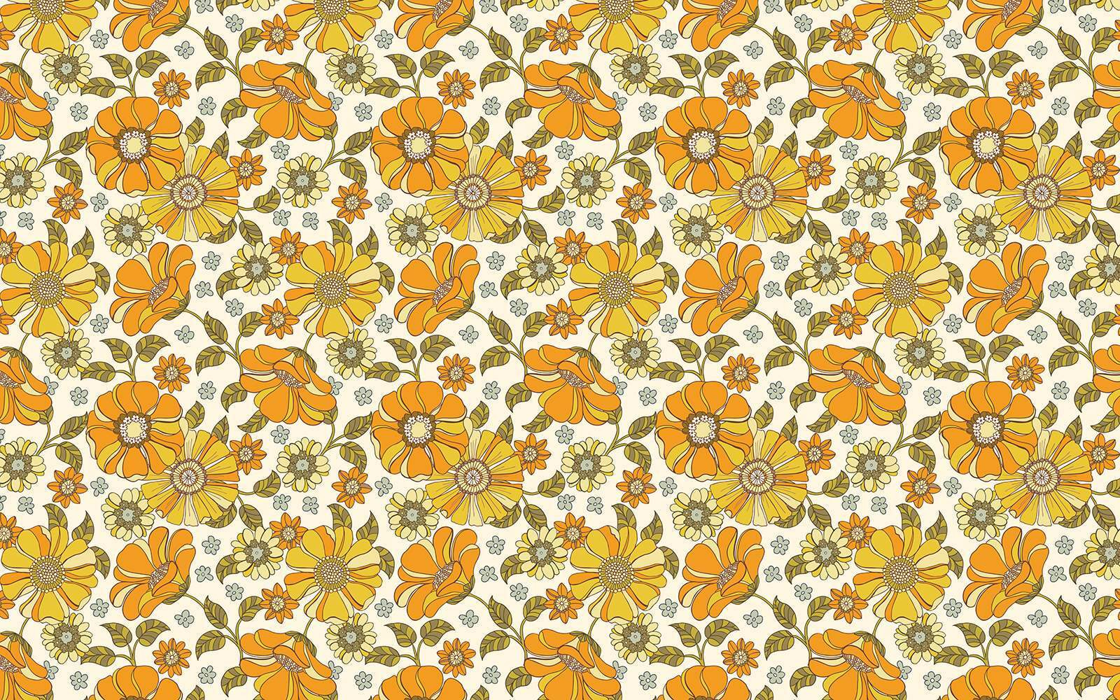 Bringen Sie einen Spritzer Freude in jeden Raum mit diesem entzückenden Wandbild, das ein lebendiges Muster aus Blumen und Blättern zeigt. Helle Orangen und fröhliche Gelbtöne tanzen spielerisch über einen cremefarbenen Hintergrund und heben sofort die Stimmung in Ihrem Zuhause. Stellen Sie sich einen sonnigen Morgen vor, mit einem Kaffee in der Hand, während diese lebendigen Blüten Wärme und Kreativität in den Raum bringen. Dieses Wandbild eignet sich perfekt für Kinderzimmer oder jeden Ort, der einen Hauch von Laune gebrauchen kann. Es verwandelt die Wände in bezaubernde Gärten und schafft einen fröhlichen Rückzugsort. Warum lassen Sie Ihre Wände nicht mit Persönlichkeit erblühen? Es geht darum, ein wenig Freude in den Alltag zu bringen!