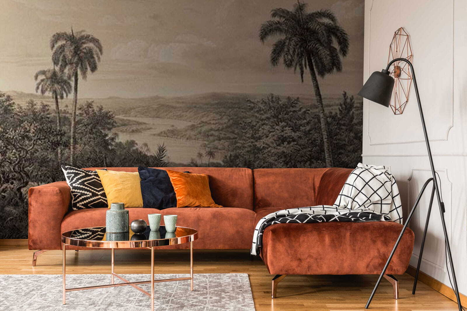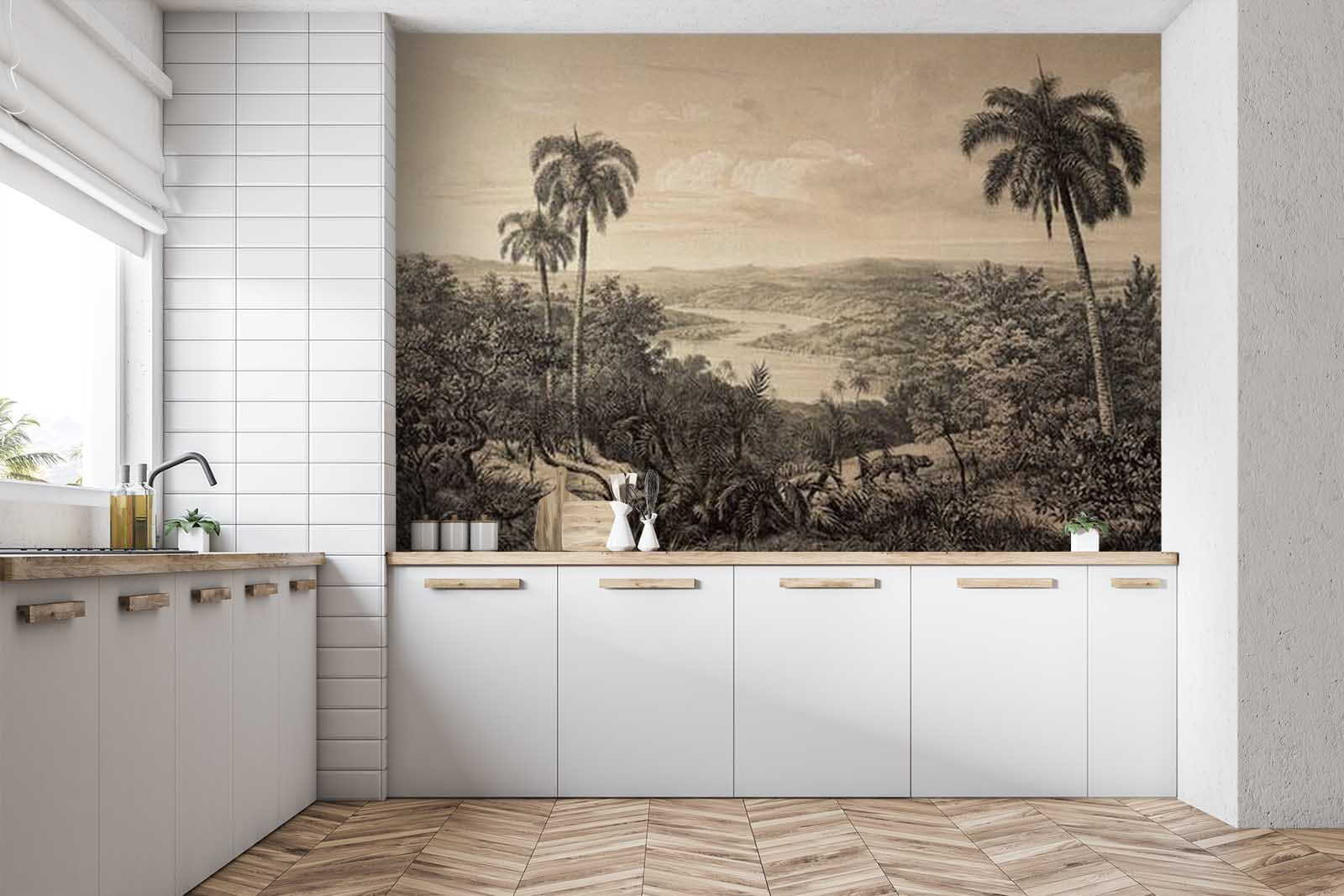 Imagine stepping into a serene paradise every time you walk into a room—this wall mural makes that possible! “Landscape with Trees and a River” captures the essence of nature with its vibrant palms and winding river, offering a peaceful escape from daily hustle. Perfect for a cozy reading nook or as a statement piece in a living room, it invites daydreams of lush escapes. Picture sipping your morning coffee while gazing at the lush greenery; it’s like bringing a bit of the outdoors inside. Plus, the subtle tones create a calm vibe, making it a delightful backdrop for all your favorite moments. What could be more comforting?