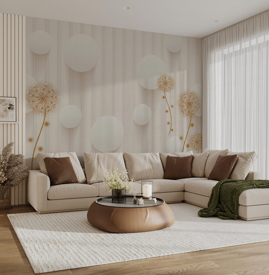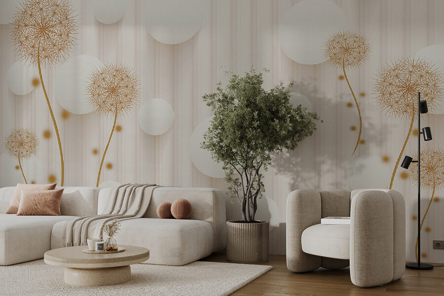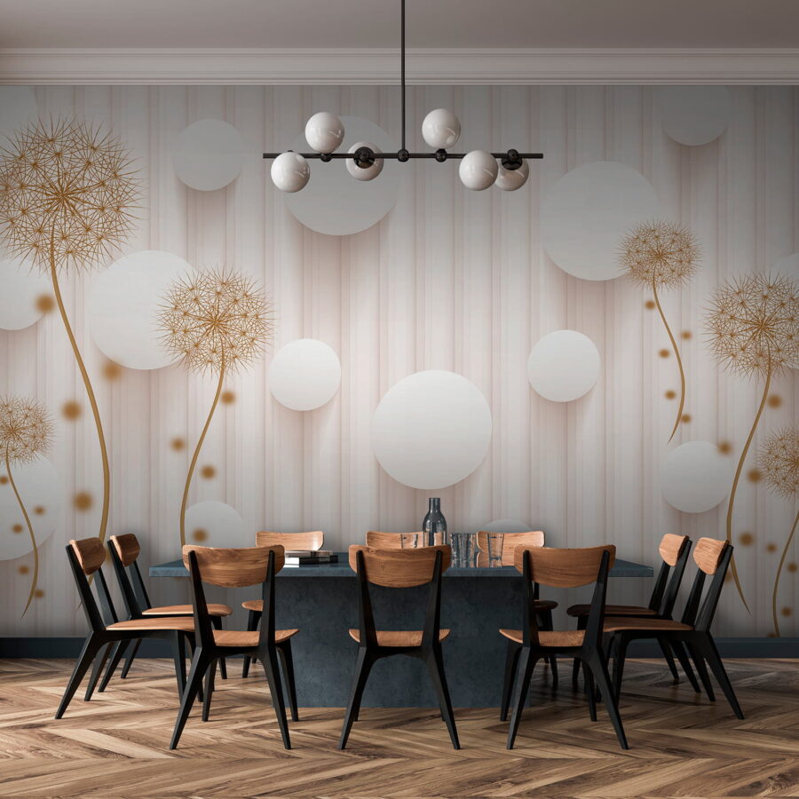 Verwandeln Sie jeden Raum mit dem skurrilen Charme der “Fototapeten White Circles and Dandelions”. Stellen Sie sich vor, Sie betreten einen Raum, in dem Pusteblumen spielerisch neben luftigen weißen Kreisen tanzen und eine leichte, verträumte Stimmung erzeugen. Es ist, als würden Ihre Wände Geheimnisse von Sonnenschein und sanften Brisen flüstern. Diese Fototapete eignet sich perfekt für eine gemütliche Leseecke oder einen hellen Eingangsbereich und verleiht der Natur einen Hauch von Magie, ganz ohne Pollenallergien! Die Gäste werden lächeln, die Kinder werden staunen, und Sie selbst werden vielleicht sogar ins Träumen geraten. Wer hätte gedacht, dass ein Wandbild solche Freude auslösen kann? Stellen Sie sich vor: ein heller Morgen mit einer Kulisse, die sich wie ein frischer Frühlingstag anfühlt, das ganze Jahr über. Perfekt, oder?