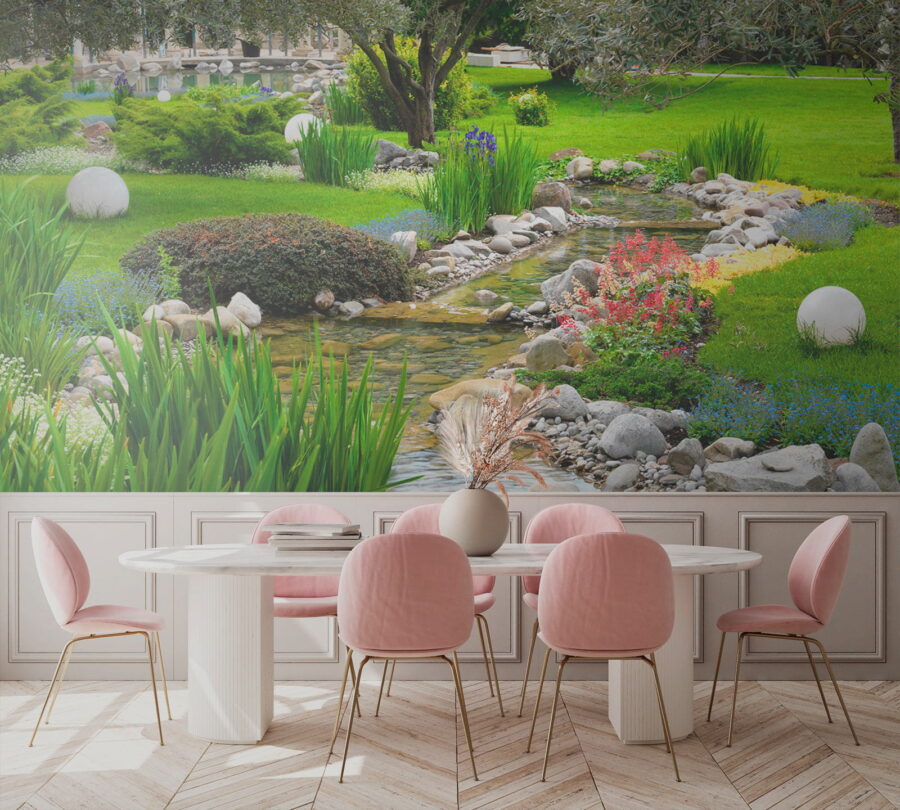 Verwandeln Sie jede Wand in eine erfrischende Oase mit dem Wandbild „Wall Murals Stream Running Through a Park”. Stellen Sie sich vor, Sie wachen jeden Morgen mit dem Anblick eines ruhigen Baches auf, der sanft durch üppiges Grün fließt – herrlich, nicht wahr? Dieses Wandbild bringt ein Stück Natur in Ihr Zuhause und eignet sich perfekt für Ihre gemütliche Leseecke oder vielleicht sogar für Ihr Homeoffice, das ein wenig mehr Atmosphäre vertragen könnte. Stellen Sie sich vor, Sie trinken Kaffee, während Sie auf lebhafte Wildblumen und einen beruhigenden Wasserlauf blicken. Es ist wie ein Mini-Urlaub, nur ohne Kofferpacken! Die Farben leuchten wunderschön und lassen jeden Raum lebendig und einladend wirken. Und seien wir ehrlich: Wer würde nicht gerne ein bisschen von dieser Ruhe im Freien direkt in sein Wohnzimmer holen?