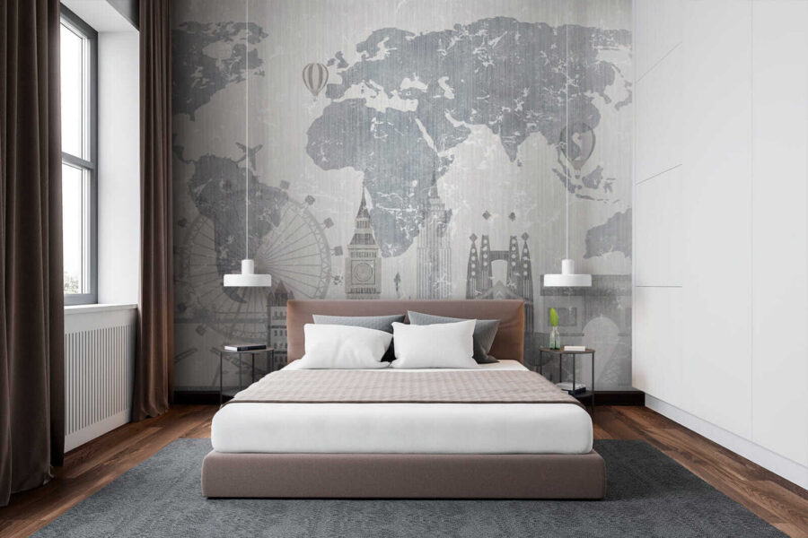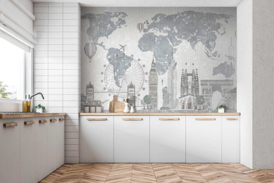 Diese Fototapete ist ein echter Knaller für alle, die ein bisschen Fernweh in ihrer Seele haben. Stell dir vor, du wachst jeden Tag auf und siehst eine Welt voller berühmter Wahrzeichen – direkt an deiner Wand! Vom Eiffelturm bis zum Big Ben – es ist, als würde man in seinem gemütlichen Schlafzimmer oder Wohnzimmer eine kleine Weltreise unternehmen. Außerdem ist es ideal für Kinder, die davon träumen, neue Orte zu erkunden, oder für Teenager, die sich einen stilvollen, weltoffenen Touch wünschen. Die gedämpften Töne sind beruhigend, nicht zu laut, aber dennoch voller Persönlichkeit. Das ist irgendwie faszinierend, oder? Du wirst dich dabei ertappen, wie du die Karte nachzeichnest, zukünftige Abenteuer planst oder einfach den einzigartigen Charme genießt, den sie deinem Raum verleiht. Ob für das Zimmer deines kleinen Abenteurers oder für deine eigene stilvolle Einrichtung, sie wird auf jeden Fall für Gesprächsstoff sorgen.
