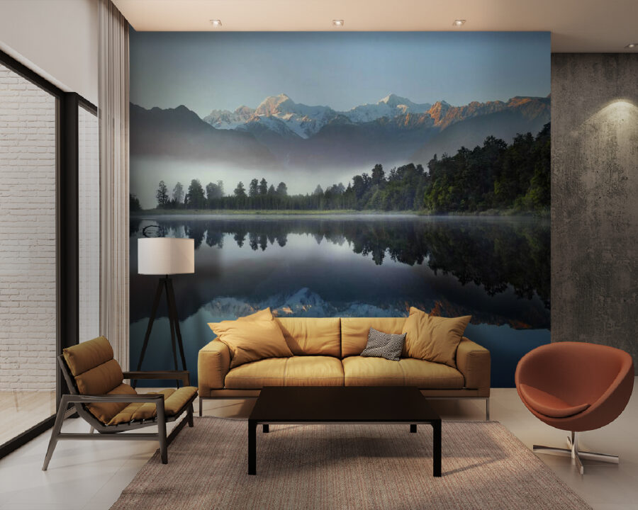 Stellen Sie sich vor, Sie begeben sich an einen ruhigen Ort am See, ohne Ihr Zuhause zu verlassen. Diese Wandtapete erweckt die ruhige Schönheit der Natur mit einer atemberaubenden Reflexion von Bäumen und majestätischen Bergen zum Leben. Stellen Sie sich vor, Sie trinken Kaffee und werden in einen friedlichen Morgen am Wasser versetzt. Die lebhaften Farbtöne tanzen sanft im Licht und lassen sogar den Montag wie einen Urlaub erscheinen. Es ist, als würde die Natur Sie rufen und Ihnen süße Nichtigkeiten über Entspannung und frische Luft zuflüstern. Ob im Wohnzimmer oder in einer gemütlichen Ecke, diese Tapete bringt Wärme und einen Hauch von wilder Schönheit in jeden Raum. Wer hätte gedacht, dass Wände so erfrischend sein können?