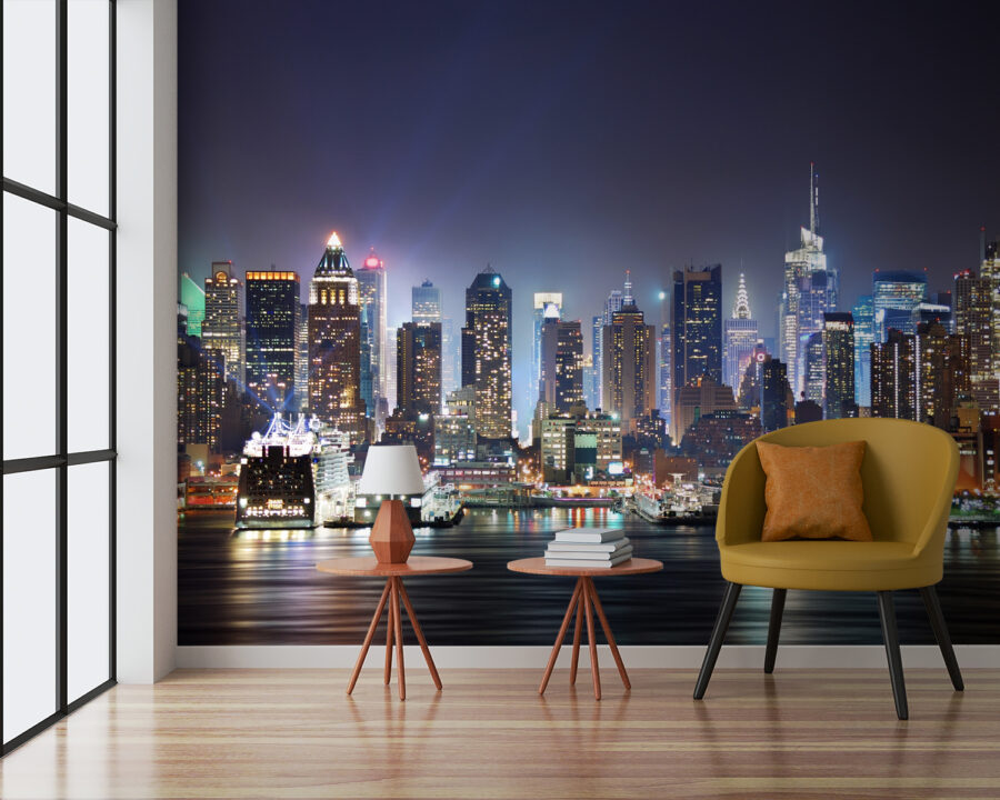 Verwandeln Sie Ihren Raum mit diesem atemberaubenden Wandbild der Skyline einer Stadt, das sich perfekt für stimmungsvolle Momente in der Nacht eignet. Stellen Sie sich das geschäftige Treiben und die Magie einer nächtlich beleuchteten Stadt vor – es ist, als hätten Sie Ihr eigenes Stück urbanes Abenteuer direkt an Ihrer Wand. Die satten Farbtöne ziehen Sie in ihren Bann und machen gemütliche Abende zu etwas ganz Besonderem. Stellen Sie sich vor, Sie treffen sich mit Freunden, schlürfen einen Drink und genießen die Atmosphäre, die dieses Wandbild schafft. Es ist, als ob die Stadt Geschichten von Träumen und nächtlichen Eskapaden erzählt. Ob im Wohnzimmer oder im Spielzimmer, dieses Wandbild bringt Leben, Charme und vielleicht sogar ein wenig Fernweh in Ihren Alltag!