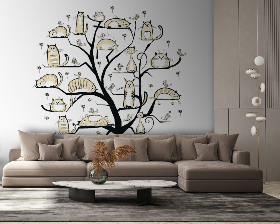 Stellen Sie sich einen skurrilen Baum vor, dessen Äste spielerisch mit Katzen aller Formen und Größen geschmückt sind – einige dösen, andere planen epische Abenteuer. Dieses Wandbild ist nicht nur Wandkunst, sondern auch ein origineller Gesprächsaufhänger. Stellen Sie es sich in einer gemütlichen Ecke vor, wo sich Freunde versammeln und Gelächter die Luft erfüllt. Die sanften, neutralen Farbtöne schaffen eine ruhige Atmosphäre, perfekt für jene faulen Sonntage, an denen Sie einfach nur Kaffee trinken und den Charme Ihres Raumes genießen möchten. Es ist, als hätte man eine Katzenfamilie direkt an der Wand, die immer bereit ist, zu unterhalten – oder ein Nickerchen zu machen. Katzenliebhaber? Die werden begeistert sein.
