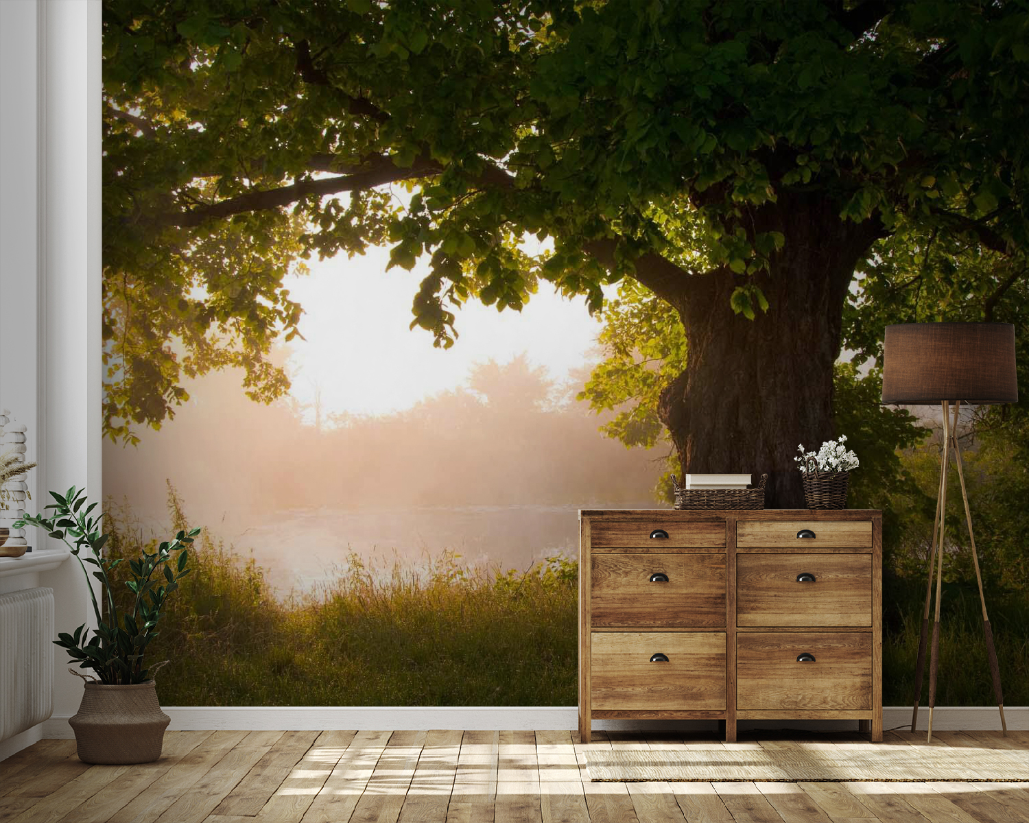Fototapeten Baum mit nebligem Fluss Fototapeten Baum mit nebligem Fluss