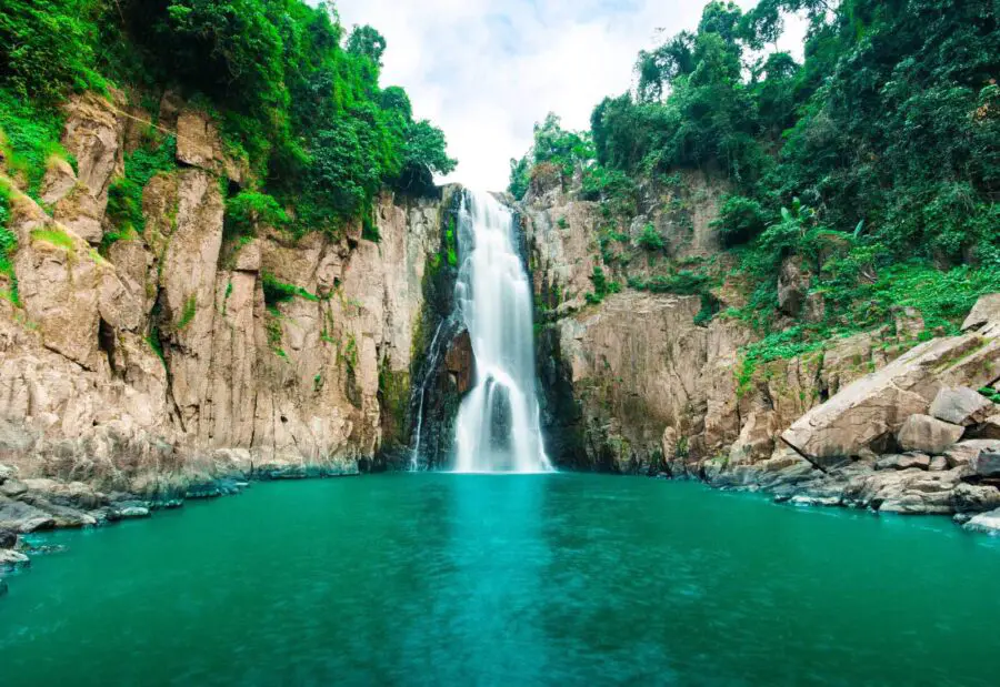 Verwandeln Sie jede Wand in ein heiteres Stück Paradies mit diesem fesselnden Wasserfall-Wandbild. Stellen Sie sich vor, dass Sie jedes Mal, wenn Sie Ihr Zimmer betreten, eine üppige, tropische Oase betreten – erfrischend, oder? Das kaskadenförmige Wasser schimmert in ruhigen türkisfarbenen Becken, während schroffe Felsen die Szene perfekt einrahmen. Es ist, als würde man sich die Natur ins Haus holen, nur ohne die lästigen Insekten. Stellen Sie sich einen gemütlichen Abend vor, an dem Sie einen Tee schlürfen und sich im beruhigenden Klang des fließenden Wassers verlieren. Dieses Wandbild eignet sich perfekt für einen ruhigen Rückzugsort oder um einen Hauch von Abenteuer in Ihren Raum zu bringen. Es lädt dazu ein, sich in seine Schönheit zu flüchten und Gefühle von Frieden und Freude zu erzeugen. Schenken Sie Ihren Wänden etwas, das Sie zum Lächeln bringt!