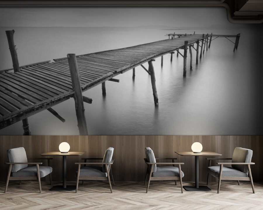 Gestalten Sie Ihren Raum mit einer Fototapete, die den friedlichen Charme einer langen Holzbrücke einfängt, die sich über ruhige Gewässer spannt. Stellen Sie sich vor, Sie stehen am Rand, atmen tief ein und lassen die Ruhe auf sich wirken. Dieses atemberaubende Werk bringt die Natur ins Haus und lässt die Grenzen zwischen Natur und Inneneinrichtung verschwimmen. Perfekt für ein Wohnzimmer oder eine Leseecke, lädt es zum Träumen von ruhigen Nachmittagen am Wasser ein. Freunde werden in Gedanken versunken sein und sich einen Spaziergang auf dieser Brücke wünschen. Wie ein Mini-Urlaub an der Wand, nur ohne den Koffer!