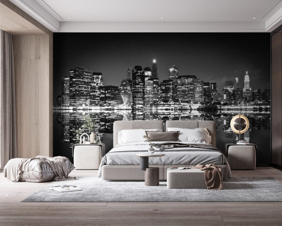 Verwandeln Sie jeden Raum in einen stilvollen Rückzugsort mit dieser atemberaubenden Wandtapete, die eine Skyline bei Nacht zeigt. Stellen Sie sich vor: Lebendige Lichter funkeln wie Sterne auf der Wasseroberfläche und werfen einen faszinierenden Schein. Es ist, als würden Sie das urbane Nachtleben direkt in Ihren Wohnraum einladen. Stellen Sie sich vor, Sie entspannen sich zu Hause, umgeben von der Dramatik und Schönheit einer pulsierenden Stadt, ohne den Lärm. Sie könnten sich sogar eine gemütliche Ecke mit Ihrem Lieblingsgetränk vorstellen und sich von der Energie der Skyline inspirieren lassen. Ein Hauch von Raffinesse, ein Spritzer Magie – diese Wandtapete hat einfach alles! Perfekt für alle, die eine stilvolle Atmosphäre lieben, ohne sich selbst zu ernst zu nehmen.