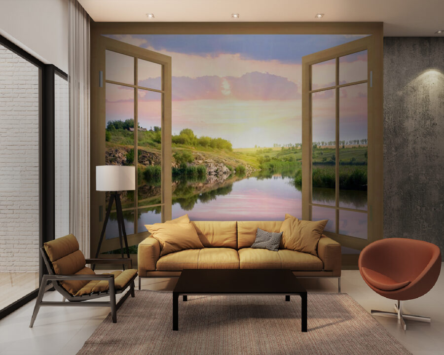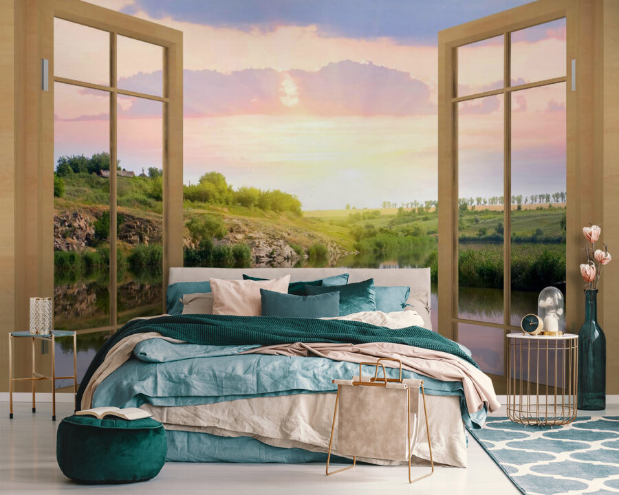 Haben Sie jemals davon geträumt, ein magisches Portal in Ihrem Haus zu haben? Diese Fototapete “Blick auf einen Fluss aus dem Fenster” ist praktisch eines. Stellen Sie sich vor, Sie wachen jeden Tag mit dieser atemberaubenden Szene auf – ein friedlicher Fluss, der durch üppiges Grün fließt, und ein Himmel in sanften Pastelltönen. Es ist, als würde man der Natur entfliehen, ohne die Couch zu verlassen. Perfekt für alle, die sich nach einem langen Tag nach ein wenig Ruhe sehnen. Ihr Raum wird sich offener anfühlen, als hätten Sie ein zusätzliches Fenster mit einer immer wieder bezaubernden Aussicht eingebaut. Und mal ehrlich, wer würde sich diese ruhige, entspannte Atmosphäre nicht wünschen? Ideal für jeden Raum – Wohnzimmer, Schlafzimmer, Büro – was immer Sie wollen!