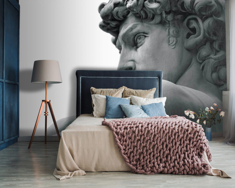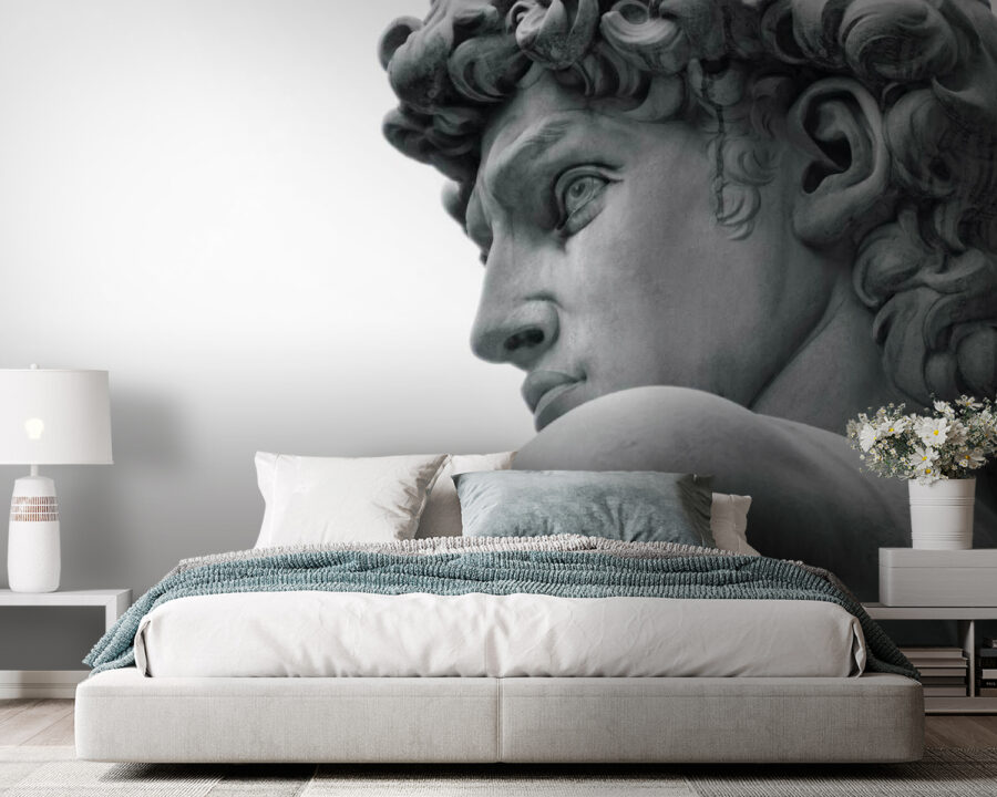 Diese Fototapete mit der Statue eines Mannes ist so, als ob Sie sich ein Stück eines großen Museums in Ihre eigenen vier Wände holen würden. Stellen Sie sich vor, dieses markante, zeitlose Gesicht wacht über Ihr Wohnzimmer – ein sofortiger Gesprächsanlass, oder? Es ist perfekt für alle, die sich nach klassischer Eleganz in einem frischen, modernen Ambiente sehnen. Die Details sind so lebendig, dass man die kühle Glätte des Marmors fast spüren kann. Er könnte eine gewöhnliche Wand in einen atemberaubenden Blickfang verwandeln. Stellen Sie sich vor, Sie würden sich bei jedem Blick ein bisschen kultivierter und anspruchsvoller fühlen!