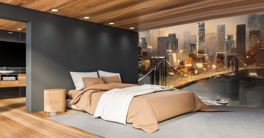 Verwandeln Sie Ihre Wand mit dem Wandbild „Brücke über einer Stadt“ in einen traumhaften Rückzugsort. Dieses wunderschöne Wandbild vereint sanfte Farbtöne und markante Silhouetten und fängt die einzigartige Atmosphäre dieser Brücke ein, während die Sonne hinter der Skyline versinkt. Stellen Sie sich vor, Sie sinken nach einem langen Tag in Ihren Lieblingssessel, halten eine Tasse Kaffee in der Hand und betrachten einfach nur dieses faszinierende Stadtbild. Es ist, als würden Sie die Magie urbaner Nächte direkt in Ihr Wohnzimmer einladen. Ihre Freunde werden sicherlich innehalten, um es zu bewundern – und vielleicht um eine Führung durch Ihren Instagram-würdigen Raum bitten. Der Charme dieses Wandbildes könnte sogar zu einer spontanen Reise inspirieren. Wer weiß?