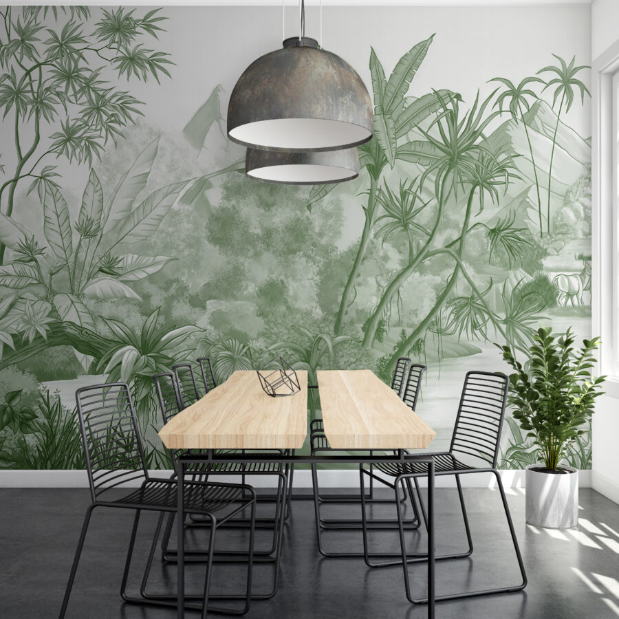Haben Sie jemals davon geträumt, in den Dschungel zu fliehen, aber ohne all die Moskitostiche und die Feuchtigkeit? Dieses Wandbild “Dschungellandschaft mit üppiger Vegetation” ist Ihre Eintrittskarte in die Ruhe, direkt in Ihrem Wohnzimmer. Stellen Sie sich vor: Sie schlürfen einen Kaffee und genießen eine Szene voller exotischem Grün – es fühlt sich an wie eine Umarmung durch die Natur. Diese hoch aufragenden Palmen und das dichte Blattwerk verwandeln jede triste Wand in ein kleines Paradies. Stellen Sie sich vor, Ihre Gäste kommen herein und sagen: “Wow!”, als wären sie gerade in einen Regenwald getreten. Das ist mehr als nur Dekoration; es ist ein sofortiger Stimmungsaufheller! Ob Sie nun träumen oder arbeiten, dieses Wandbild schafft eine ruhige, lebendige Atmosphäre, die schwer zu übertreffen ist. Perfekt für alle, die die Natur lieben, sich aber nicht mit der Arbeit im Dschungel beschäftigen wollen. Tauchen Sie ein, es ist eine wilde (und doch heitere) Fahrt!