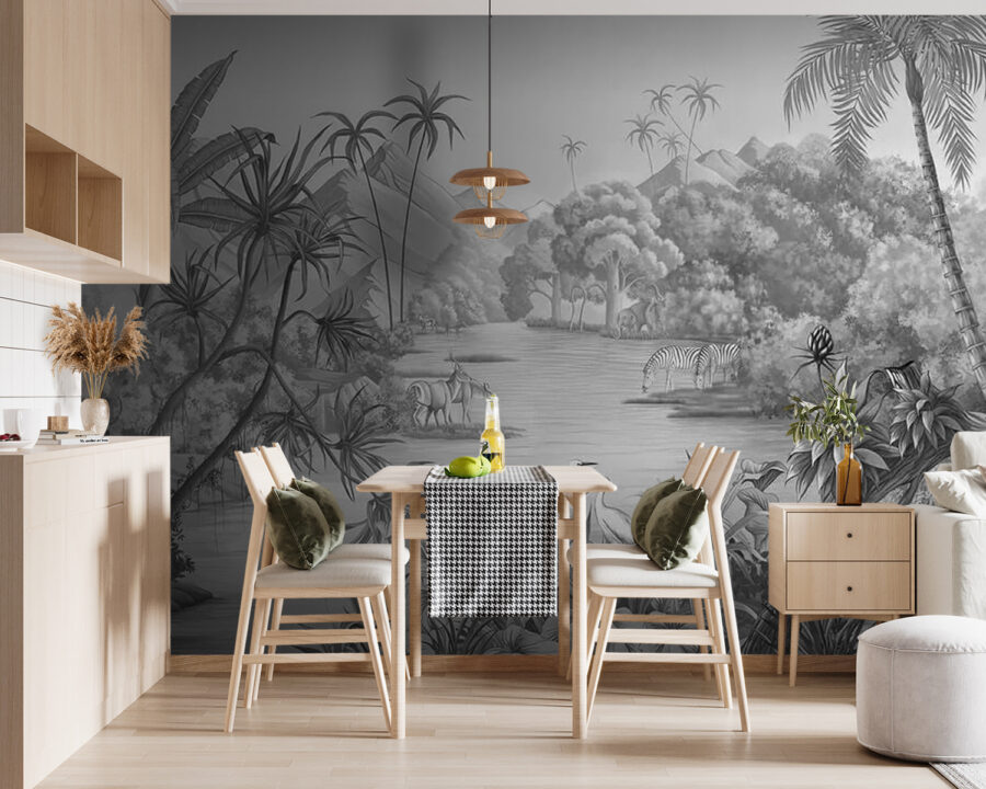 Fühlen Sie sich abenteuerlustig? Dieses Wandbild “Fototapeten Zebras Drinking Water” ist mehr als nur eine Dekoration – es ist wie ein Blick in eine geheime Dschungeloase. Stellen Sie sich vor, Sie schlürfen Ihren Morgenkaffee, während Zebras, diese eleganten gestreiften Wunderwesen, an einem ruhigen Wasserloch trinken. Das ist nicht nur Kunst, sondern auch ein kleiner Urlaub von der Hektik des Alltags. Dieses Wandbild ist perfekt geeignet, um Ihrem Raum einen Hauch von Wildnis zu verleihen. Es verbindet die üppige Atmosphäre von Dschungelbäumen mit dem ruhigen Charme der afrikanischen Tierwelt. Betrachten Sie es als einen sanften Anstoß für Ihren Abenteuergeist, direkt an Ihrer Wand – Sie brauchen kein Flugticket!