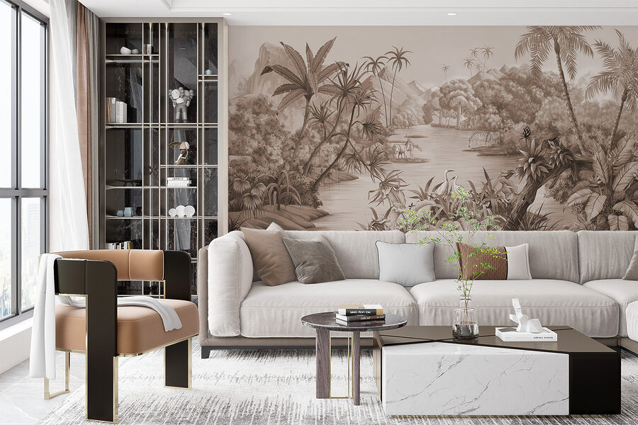 Verwandeln Sie jeden Raum in einen tropischen Zufluchtsort mit dieser atemberaubenden Fototapete, die eine lebhafte Dschungelszene zeigt. Stellen Sie sich vor, wie Sie mit den Geräuschen der Natur um sich herum faulenzen, während sich anmutige Tiere durch üppiges Laub schlängeln. Die erdigen Farbtöne und komplizierten Details dieses Wandbildes schaffen eine heitere Atmosphäre, die jeden Blick wie einen Miniurlaub erscheinen lässt. Perfekt für eine gemütliche Ecke oder ein lebhaftes Familienzimmer, lädt es Wärme und Abenteuer ein. Stellen Sie sich vor, Sie schlürfen einen Kaffee und träumen dabei von wilden Dschungeln – wer würde sich das nicht wünschen? Holen Sie sich ein Stück Natur ins Haus und sehen Sie zu, wie Ihre Wände zum Leben erwachen!