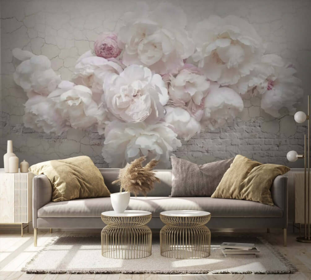 Verwandeln Sie Ihren Raum mit dieser Fototapete mit weißen Pfingstrosen auf einer leicht rissigen Wand in einen reizvollen Garten der Gelassenheit. Es ist, als würde man die Blüte des Frühlings ins Haus holen, ohne zu niesen! Stellen Sie sich vor: Sie trinken Tee auf Ihrer Couch und genießen die sanften, romantischen Farbtöne dieser Blumen. Sie flüstern Geschichten von Ruhe und Schönheit und eignen sich perfekt, um eine triste Ecke aufzuhellen oder Ihrem Wohnzimmer einen Hauch von Eleganz zu verleihen. Ihre Freunde werden denken, dass Sie Ihr Dekorationsspiel auf die Spitze getrieben haben. Das ist ein echter Gesprächsanlass – und auf jeden Fall interessanter als eine schlichte Wand! Jeder Blick ist eine kleine Erinnerung an den Charme der Natur. Stellen Sie es sich einfach vor!
