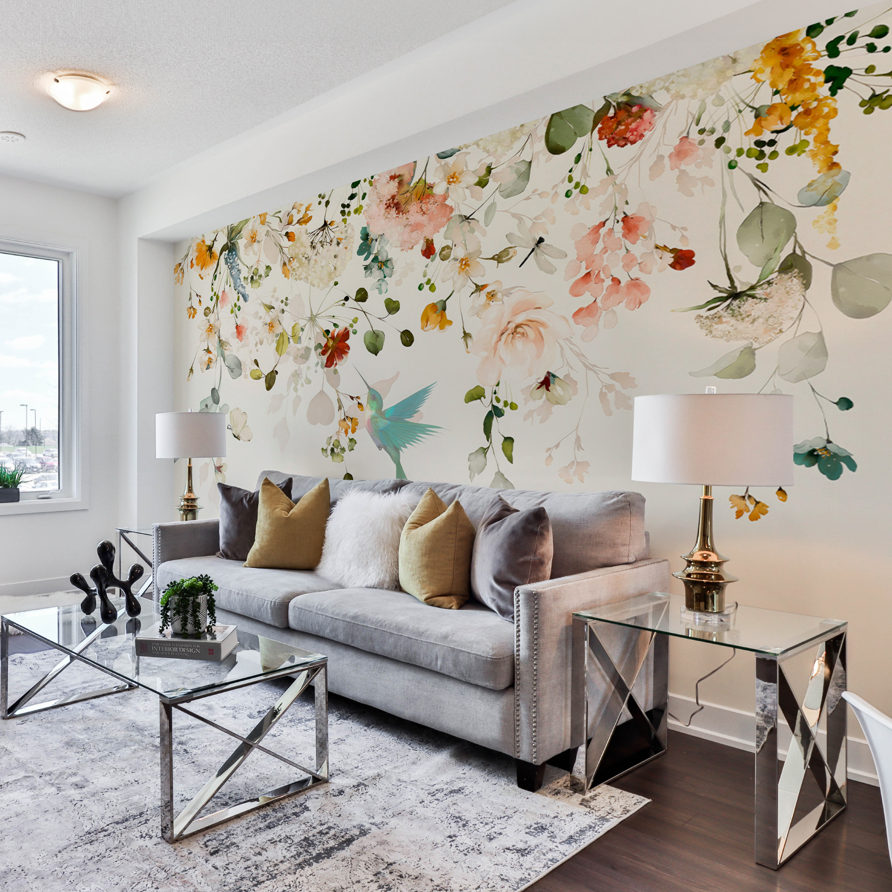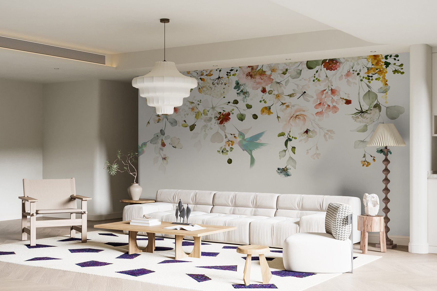 Dieses Wandbild hat eine ruhige Schönheit, die einfach… beruhigend ist. Diese Pastelltöne und die filigranen Details? Vermitteln ein gemütliches, aber dennoch elegantes Gefühl. Und dieser Kolibri – so süß und skurril, nicht wahr? Es ist fast so, als ob man das Summen seiner kleinen Flügel hören könnte. Egal, ob Sie es sich mit einem Buch gemütlich machen oder mit Freunden plaudern, dieses Wandbild schafft eine wunderbar ruhige Atmosphäre.
