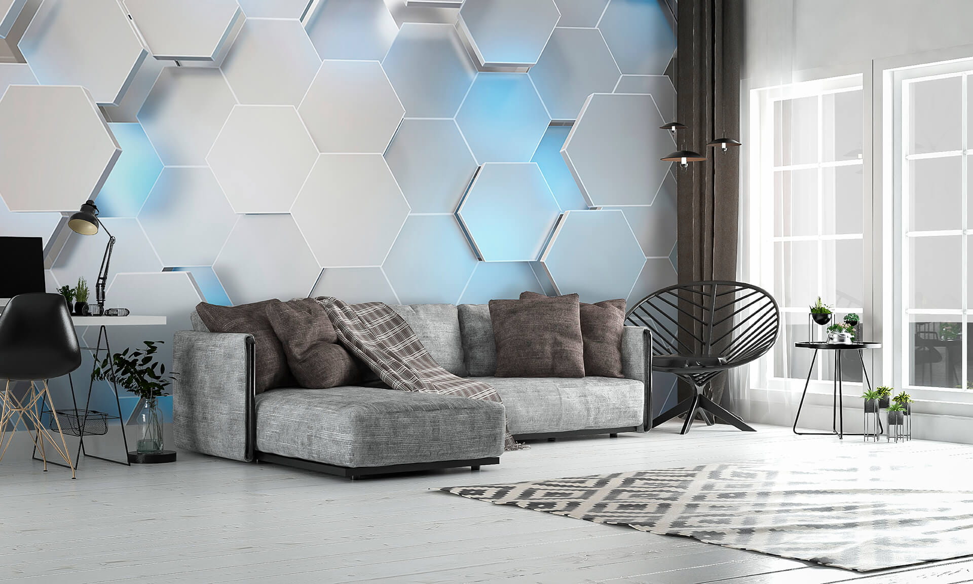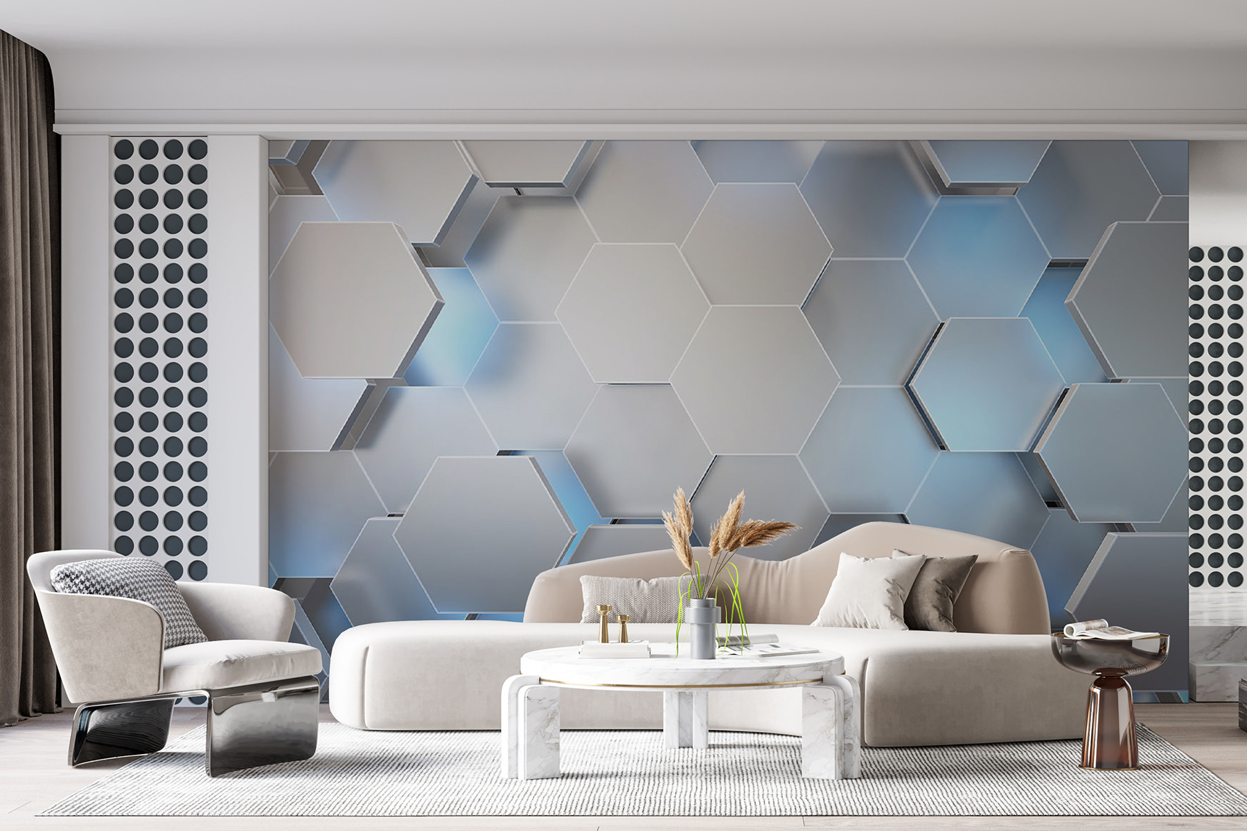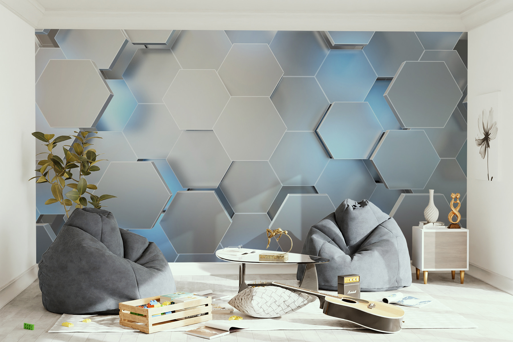 Möchten Sie Ihren Raum aufpeppen? Diese Fototapete zeigt ein atemberaubendes sechseckiges Muster, das sich wie eine kühle Brise an einem sonnigen Tag anfühlt. Es ist abstrakt genug, um die Kreativität anzuregen, aber auch strukturiert genug, um für Ausgeglichenheit zu sorgen. Stellen Sie sich vor, Sie betreten Ihr Zimmer und fühlen sich sofort inspiriert oder vielleicht auch nur ein bisschen ausgefallen. Freunde könnten sich sogar zu Ihnen beugen und sagen: “Wow, wo hast du das gefunden?” Außerdem ist es vielseitig einsetzbar – perfekt für ein Wohnzimmer, ein Büro oder sogar eine gemütliche Leseecke. Verleihen Sie Ihren Wänden ein neues Gesicht, das so einzigartig ist wie Ihr Stil!