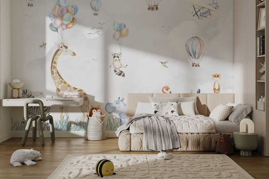 Ein Hauch von Laune für Ihr Kinderzimmer! Das Wandbild “Hippo in the Grass” ist ein absoluter Charmeur. Stellen Sie sich vor, Sie betreten ein Zimmer und fühlen sich wie auf einer zauberhaften Safari – schwebende Heißluftballons, Tiere wie Giraffen und Zebras, die in hohen Grasflächen chillen. Sogar ein frecher Waschbär, der Luftballons hält! Dieses Wandbild versprüht eine lebendige, verspielte Atmosphäre, die Kinder – und Erwachsene – lieben. Es eignet sich perfekt für ein Kinderzimmer und regt die Fantasie und das Abenteuer an. Stellen Sie sich vor, dass Gute-Nacht-Geschichten einen ganz neuen Hintergrund haben und jede Nacht zu einem kleinen Abenteuer wird. Und wer möchte nicht ein glückliches Nilpferd in seinem Zimmer haben? Ein echter Gesprächsanlass. Machen Sie sich bereit für das Staunen der Kleinen (und auch der Großen!). Das ist nicht nur Dekoration, das ist Freude an der Wand.