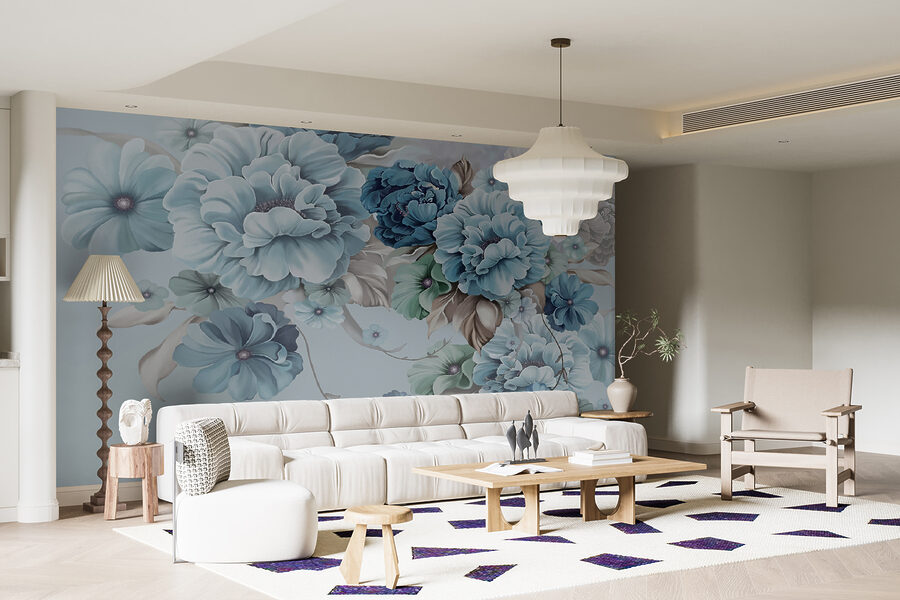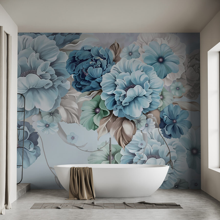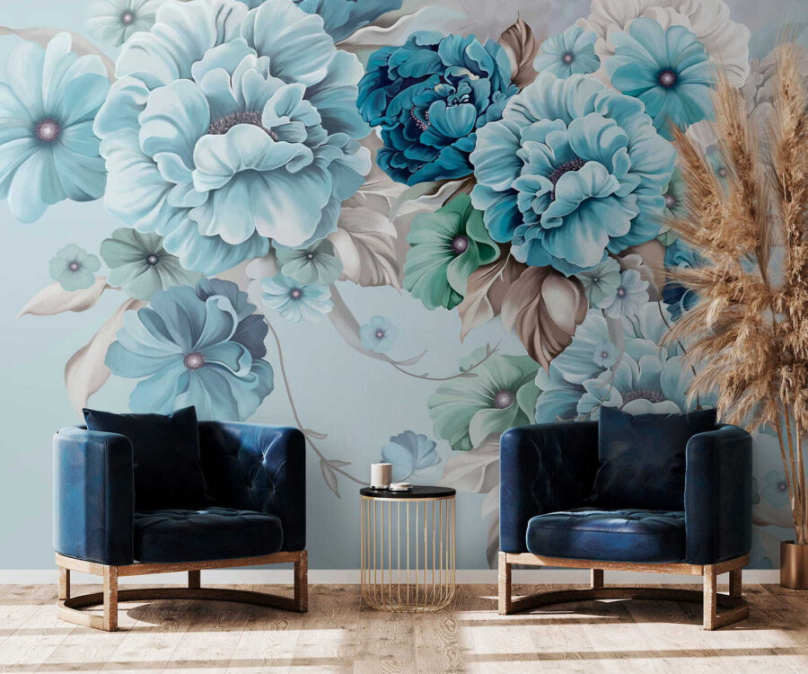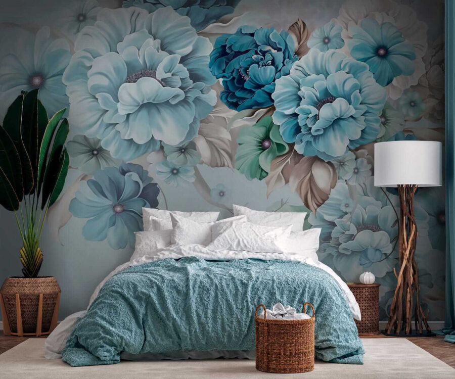2 Rezensionen für Fototapeten Elegante tealfarbene Blüten in sanfter Harmonie