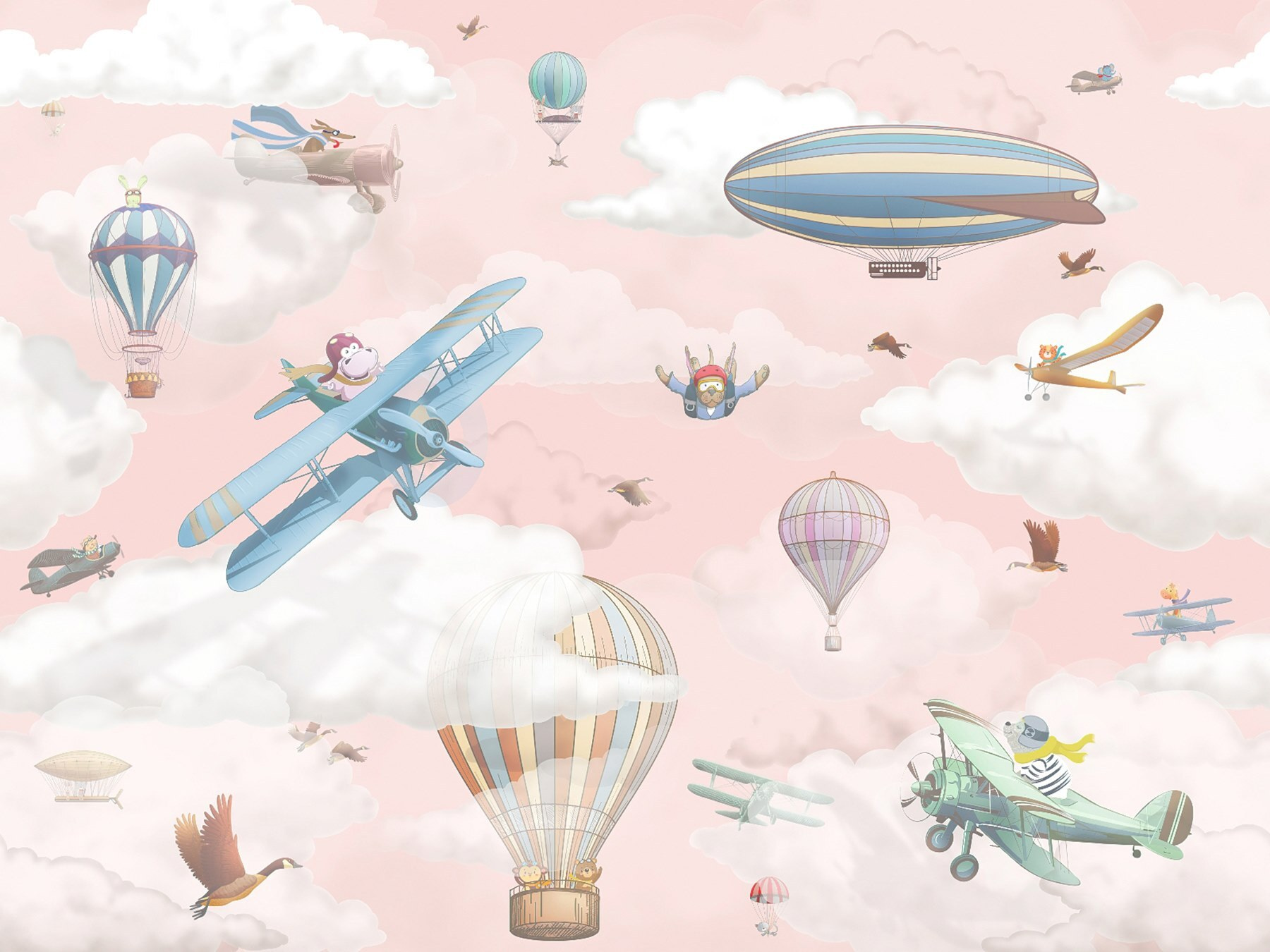 Verwandeln Sie jeden Raum in eine skurrile Welt mit dieser entzückenden Fototapete mit Flugzeugen und Heißluftballons, die durch flauschige Wolken schweben. Stellen Sie sich vor, Sie betreten einen Raum und werden anstelle von schlichten Wänden von bunten Flugzeugen und niedlichen Tieren begrüßt, die durch einen verträumten Himmel schweben. Das ist wie ein kleines, süßes Abenteuer jeden Tag! Perfekt für ein Kinderzimmer oder eine gemütliche Ecke, verleiht dieses Design einen verspielten Charme, der die Fantasie anregt. Sanfte Pastellfarben sorgen für eine beruhigende Atmosphäre und machen es leicht, sich zu entspannen. Wer würde nicht über einen Affenpiloten oder einen mutigen kleinen Fallschirmspringer lächeln? Diese Fototapete ist nicht nur Dekoration, sondern auch eine sanfte Erinnerung daran, große Träume zu haben und der Kreativität freien Lauf zu lassen!