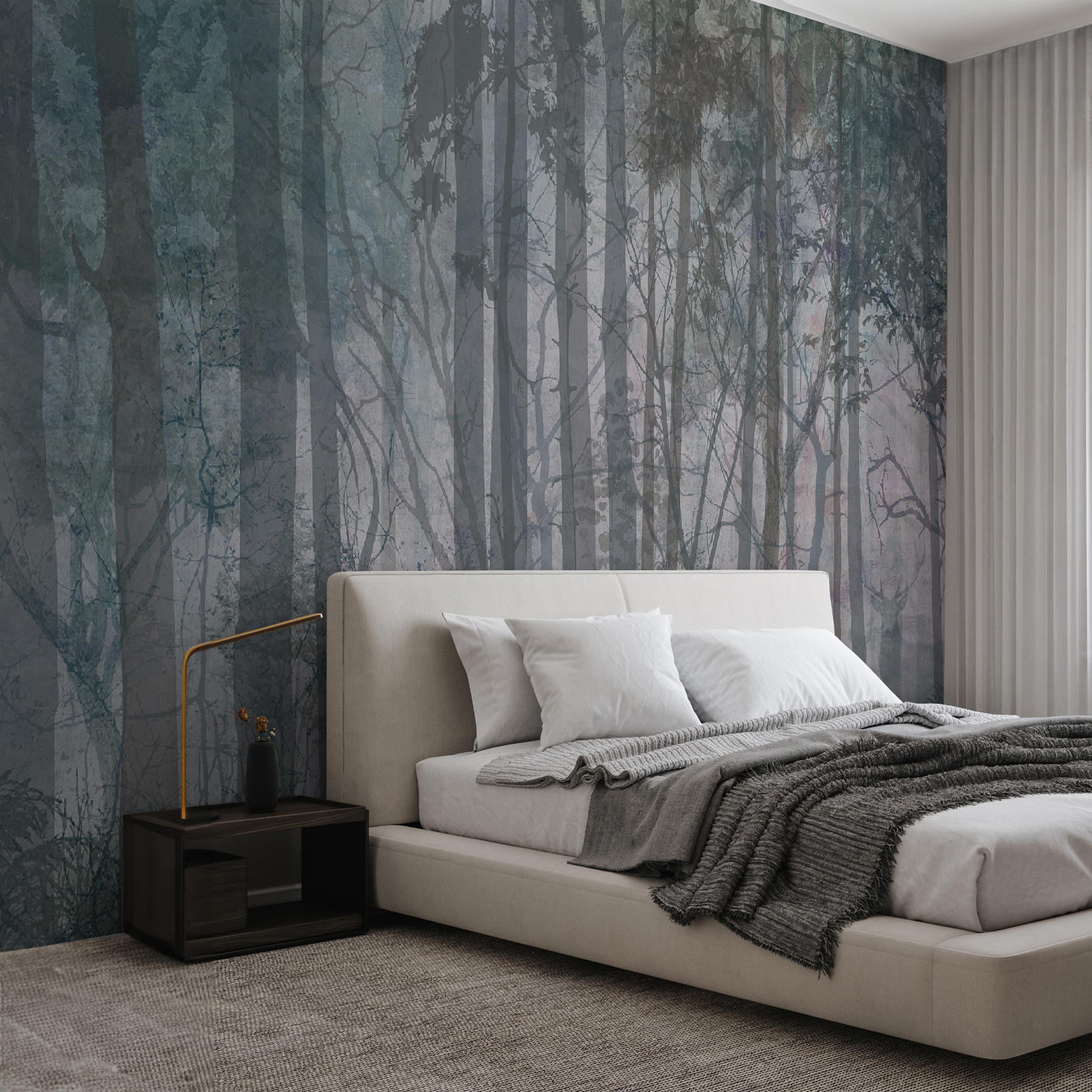 Die Farben sind dezent, mit Grün- und Blautönen, die mühelos ineinander übergehen, so dass es leicht zu sehen ist. Es ist, als ob man sich die Ruhe des Waldes ins Haus holt. Außerdem ist es perfekt für alle, die die Natur lieben, sich aber nicht über die Ungeziefer und das Wetter freuen, die normalerweise mit ihr einhergehen. Ein netter Gesprächsanlass; die Leute könnten sich dabei ertappen, wie sie “Wo ist das Reh?” spielen, wenn sie zu Besuch kommen.