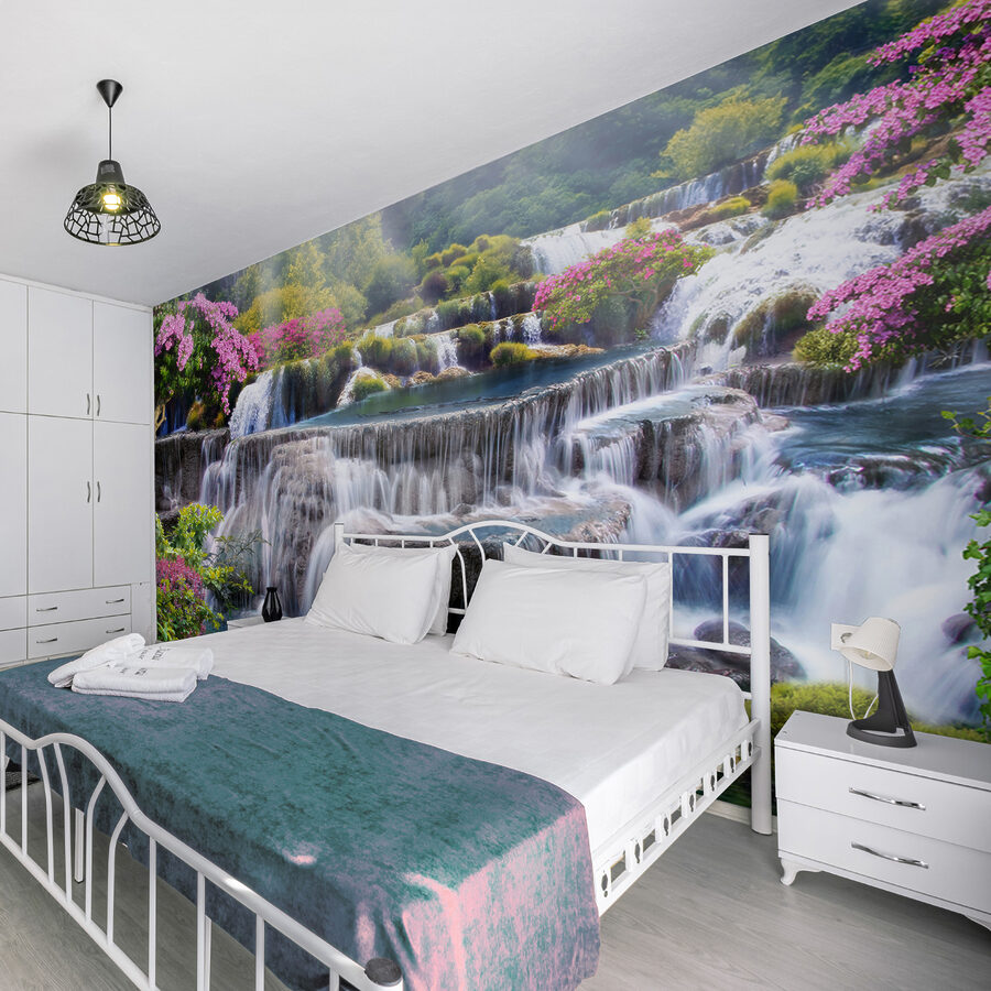 Verwandeln Sie jeden Raum in einen ruhigen Rückzugsort mit dem bezaubernden Wasserfall-Wandbild, umgeben von lebhaften Blüten. Stellen Sie sich vor: Ein sanfter Wasserfall fließt friedlich dahin, umrahmt von fröhlichen Blumen, die in der Brise zu tanzen scheinen. Es ist, als ob man sich ein Stück Natur ins Haus holt, nur ohne die schlammigen Schuhe! Die beruhigenden Farben laden zum Entspannen ein und eignen sich perfekt für gemütliche Abende oder gesellige Zusammenkünfte. Stellen Sie sich vor, Sie entspannen sich nach einem langen Tag und verlieren sich in dieser ruhigen Szene. Es ist nicht nur eine Wand, sondern eine erfrischende Flucht, die jedem Raum Leben einhaucht. Warum sollten Sie sich mit dem Gewöhnlichen zufrieden geben, wenn Ihre Wände eine schöne Geschichte erzählen können?
