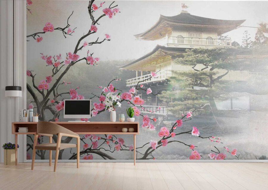 3 Rezensionen für Fototapeten Blüten umrahmen einen ruhigen japanischen Tempel