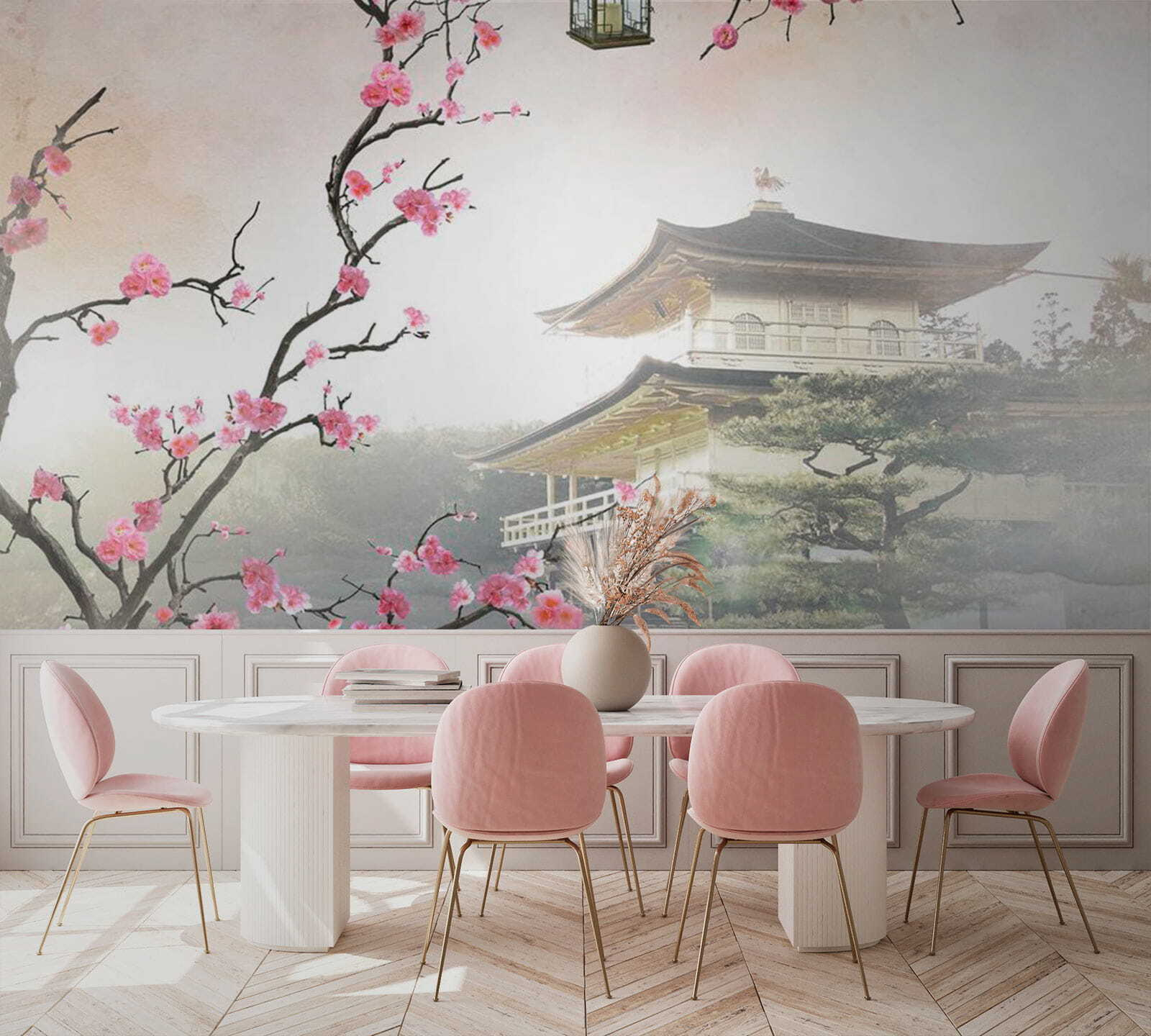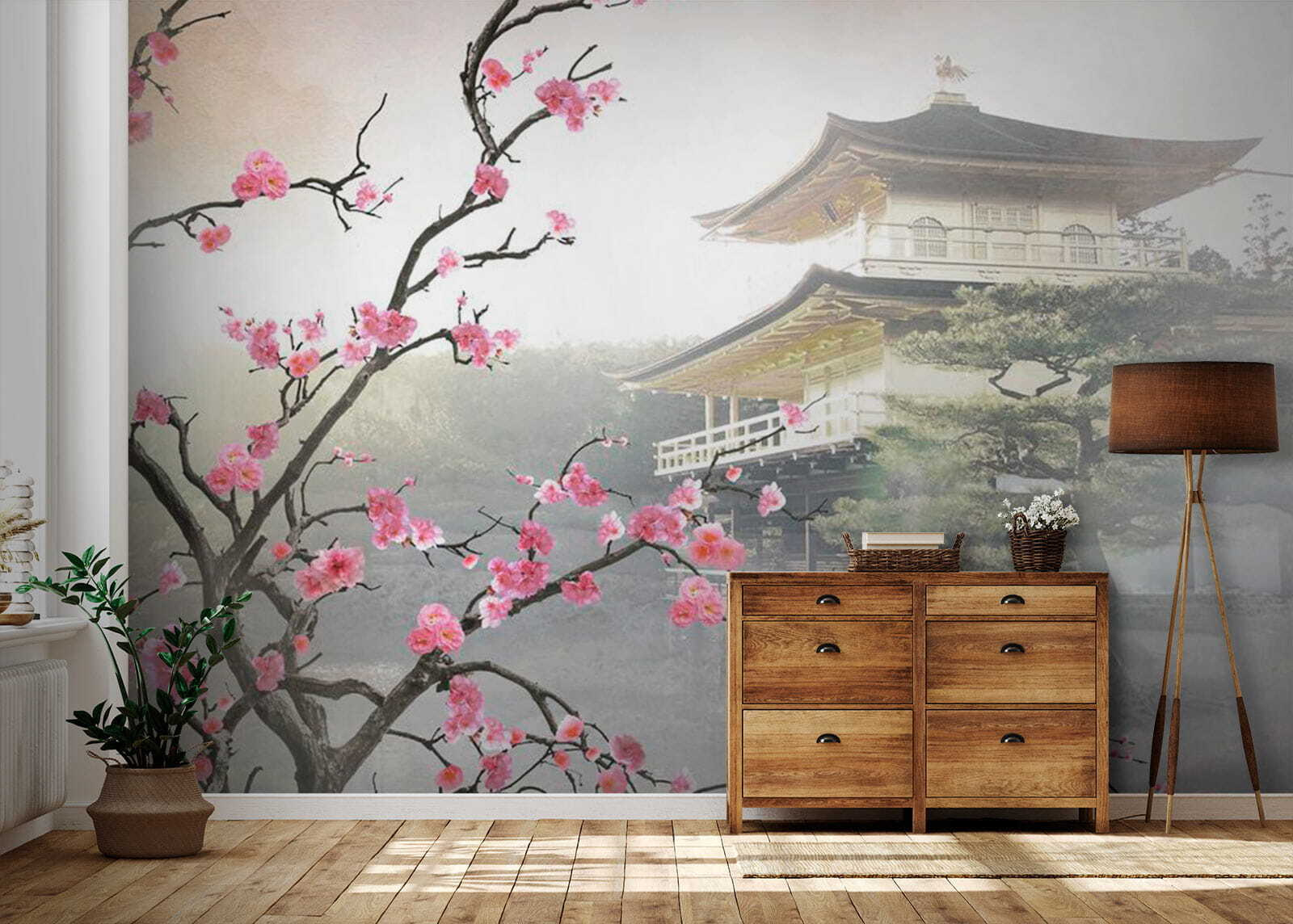 3 Rezensionen für Fototapeten Blüten umrahmen einen ruhigen japanischen Tempel