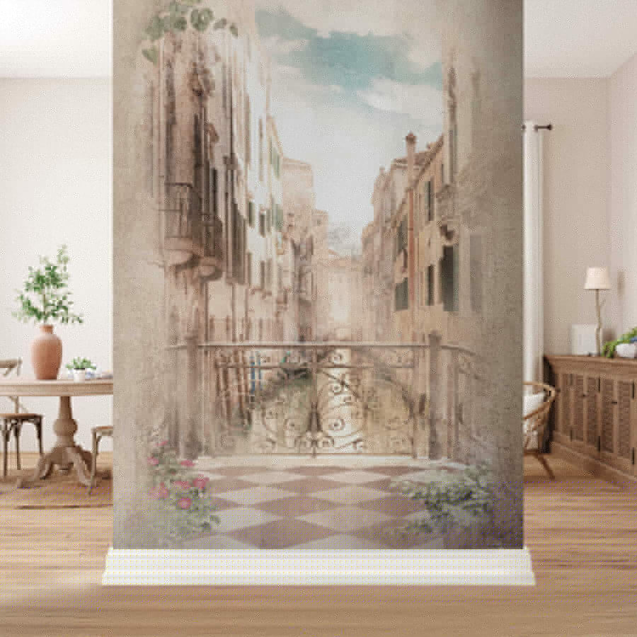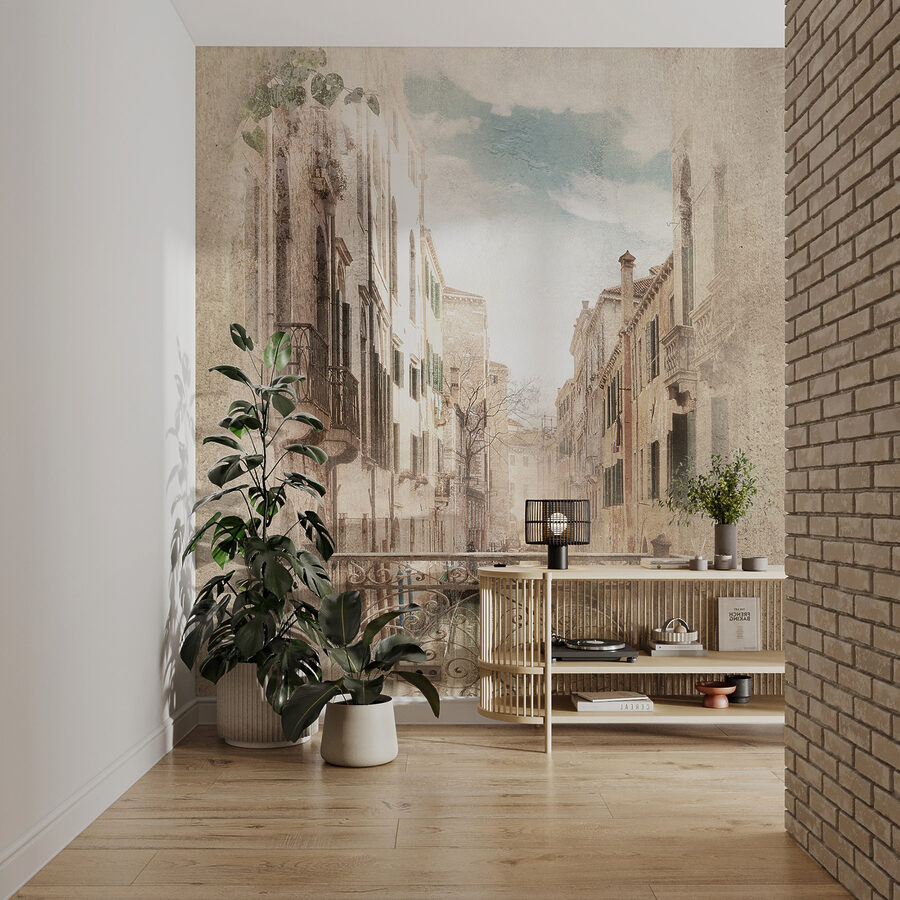 Stellen Sie sich vor, Sie schlendern jeden Tag durch eine malerische venezianische Straße – aber ohne Flugticket. Genau das bietet diese “Wandmalerei Venezianische Straße mit verziertem Balkon”. Es ist, als hätten Sie plötzlich die bezauberndste Aussicht Europas direkt in Ihrem Wohnzimmer. Die Art und Weise, wie der verschnörkelte Balkon in die Höhe ragt und fast dazu einlädt, sich darauf zu lehnen und die Straße hinunterzuschauen? Absolut traumhaft.