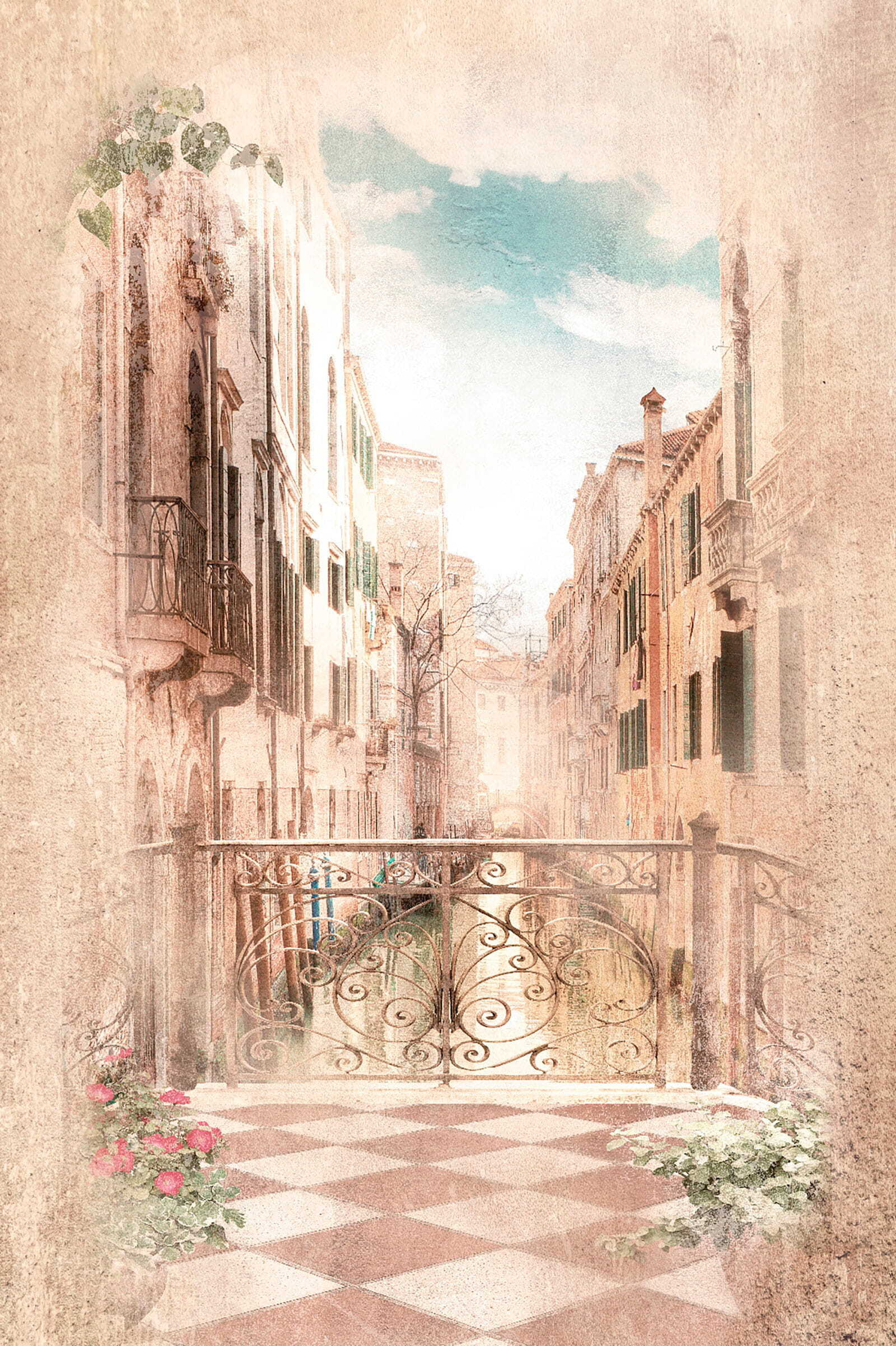 Stellen Sie sich vor, Sie schlendern jeden Tag durch eine malerische venezianische Straße – aber ohne Flugticket. Genau das bietet diese “Wandmalerei Venezianische Straße mit verziertem Balkon”. Es ist, als hätten Sie plötzlich die bezauberndste Aussicht Europas direkt in Ihrem Wohnzimmer. Die Art und Weise, wie der verschnörkelte Balkon in die Höhe ragt und fast dazu einlädt, sich darauf zu lehnen und die Straße hinunterzuschauen? Absolut traumhaft.