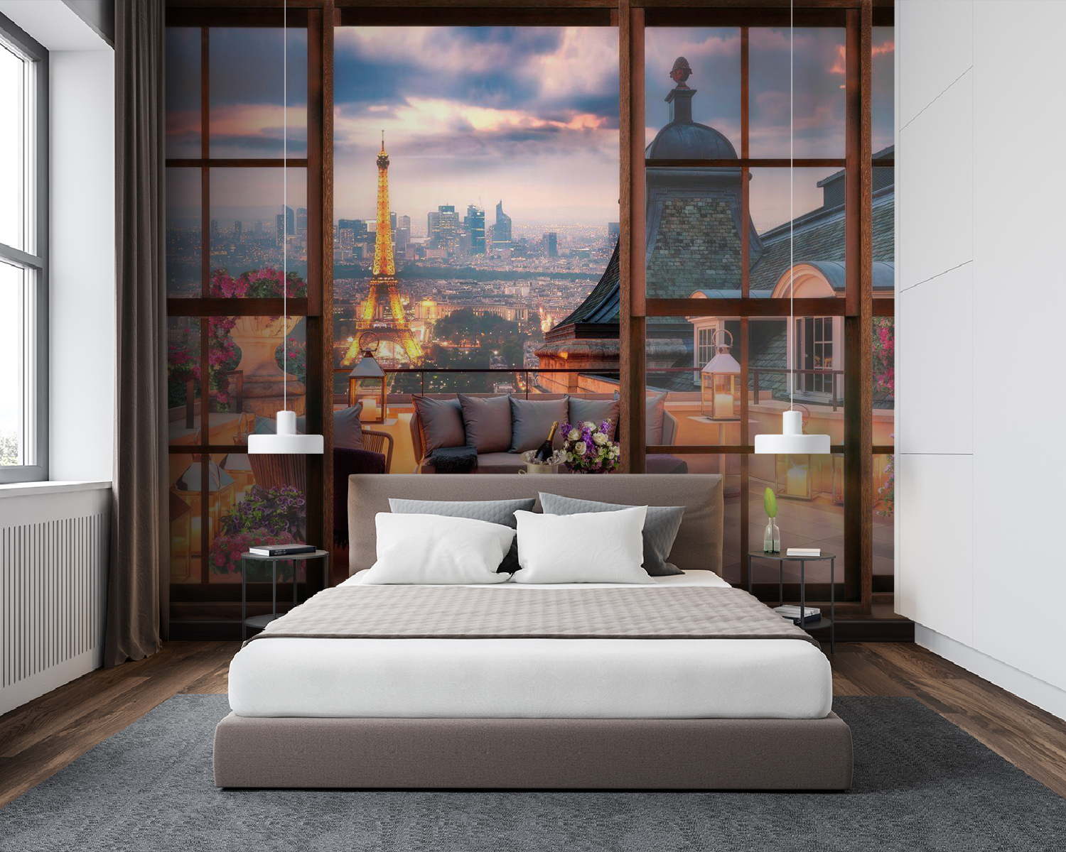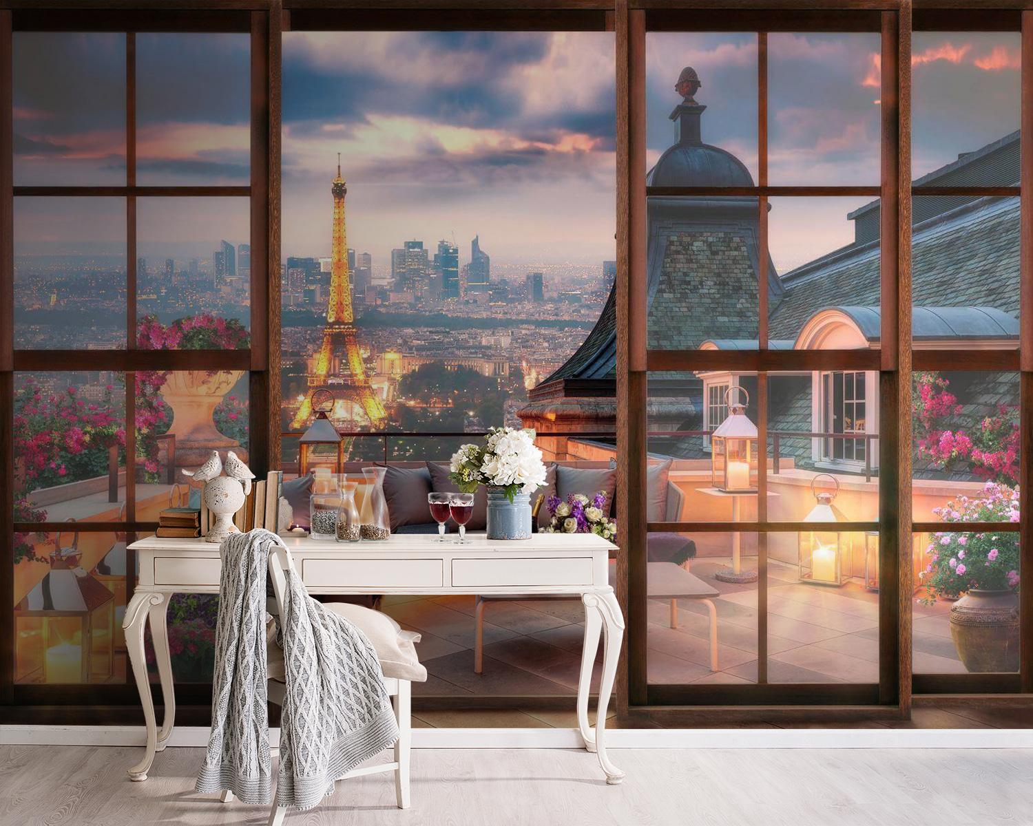 Stellen Sie sich vor, Sie sind gerade in eine gemütliche Ecke in Paris getreten – ja, so fühlt sich diese Wandmalerei an. “Eine Flasche Wein in einem Eimer mit Eis” – und voilà, sofortige schicke Stimmung. Diese Fototapete eignet sich perfekt, um Ihrem Wohn- oder Essbereich ein gewisses Etwas zu verleihen, denn sie dekoriert nicht nur, sondern versetzt Sie auch in eine andere Welt. Stellen Sie sich Folgendes vor: Anstelle von schlichten Wänden haben Sie die Aussicht auf die Stadt von einer Pariser Terrasse aus. Wein auf dem Tisch, weiche Kissen überall, Blumen als Farbakzente – und das alles eingerahmt von Ihren “Fenstern”. Man hat fast das Gefühl, das ferne Brummen der Stadt unter dem Schein des Eiffelturms zu hören. Ein kleines Stück europäischer Eleganz, direkt in Ihrem Zuhause. Perfekt für Träumer und Einrichtungsliebhaber – mit Wärme, Charme und einem Hauch von Romantik. Wer braucht schon ein Flugticket?