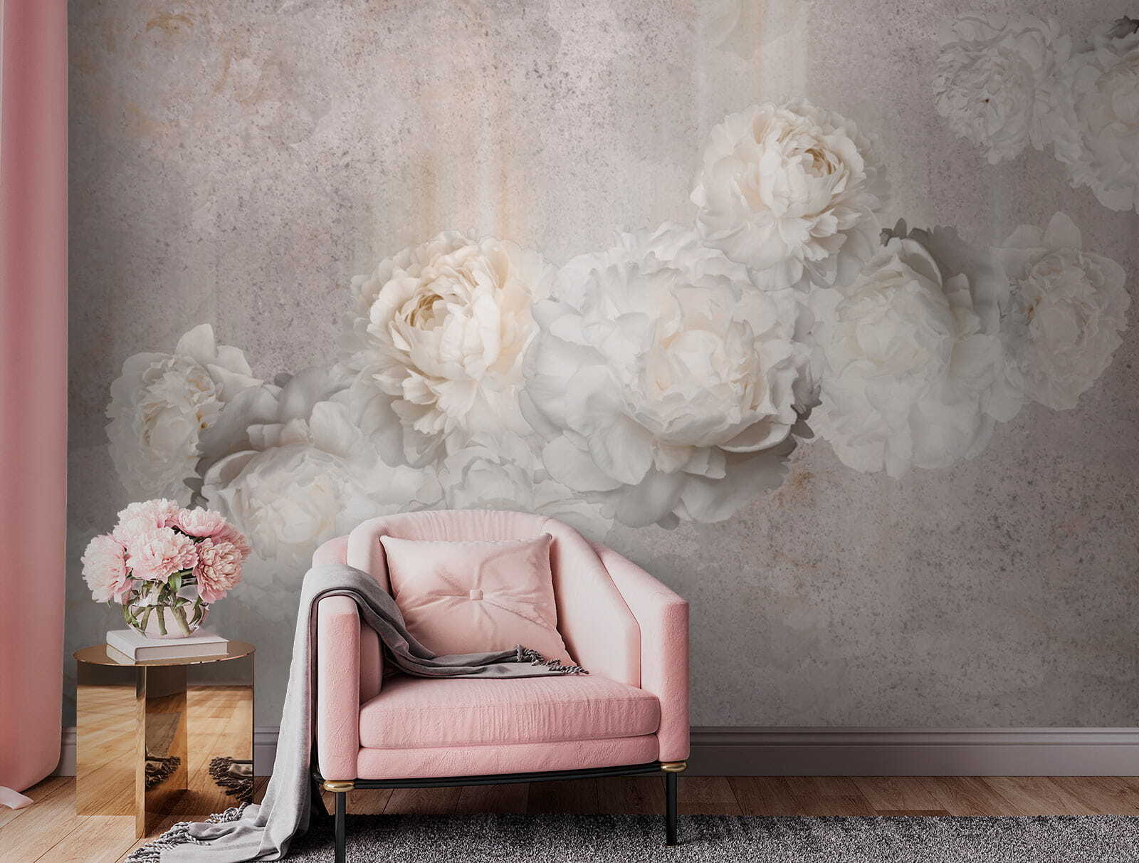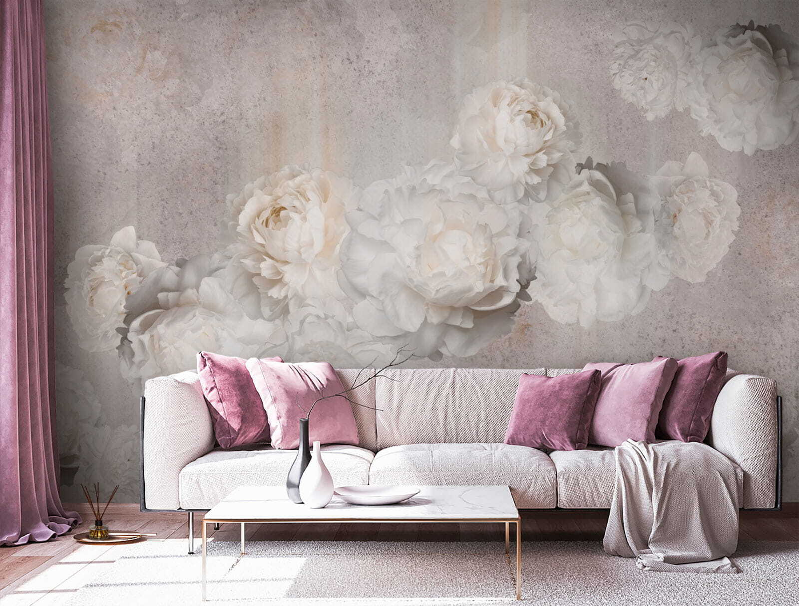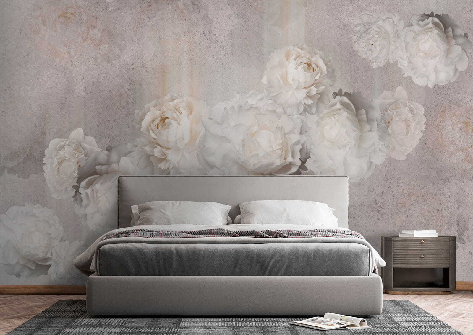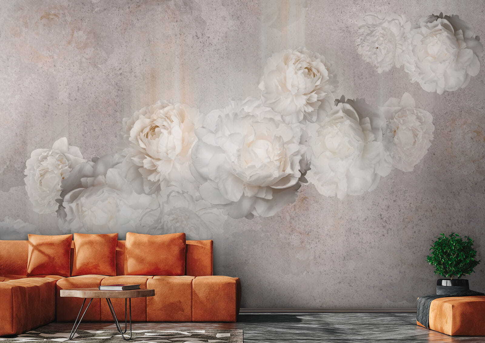 Fototapeten Weiße Blumen auf strukturiertem Hintergrund Fototapeten Weiße Blumen auf strukturiertem Hintergrund