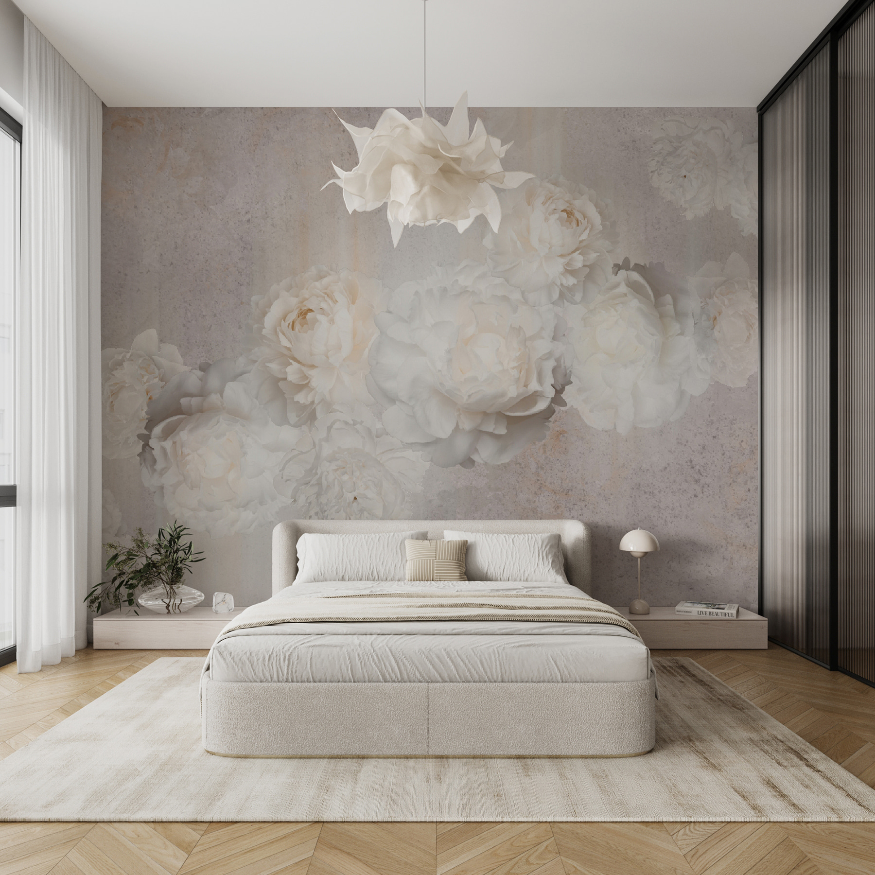 Stellen Sie sich vor, Sie betreten einen Raum, der sich wie eine heitere Gartenoase anfühlt. Das ist genau das, was diese Fototapete mit weißen Blumen auf einem weichen Hintergrund bewirkt. Die Blütenblätter scheinen zu schweben und erzeugen eine ätherische Stimmung, die jeden Raum sofort ruhiger wirken lässt. Freunde könnten mitten im Gespräch innehalten und sich in der verträumten Eleganz verlieren. Perfekt für eine Ecke, die einen sanften Touch braucht, oder für ein Wohnzimmer, das einen frischen Akzent erhalten soll. Stellen Sie sich vor, Sie machen es sich mit einem guten Buch gemütlich, umgeben von dieser sanften Schönheit – ach, das ist pure Glückseligkeit. Es ist nicht nur Dekoration, es ist wie ein Hauch von frischer Luft im Haus. Wer hätte gedacht, dass Blumen einen Raum so mühelos verwandeln können?