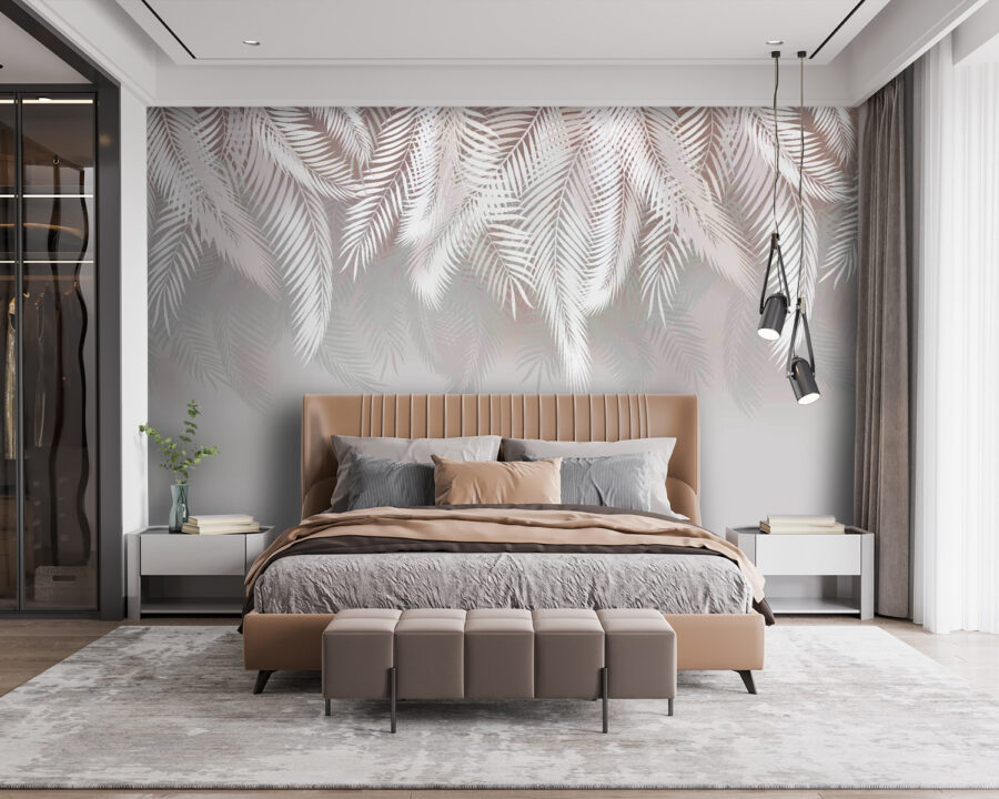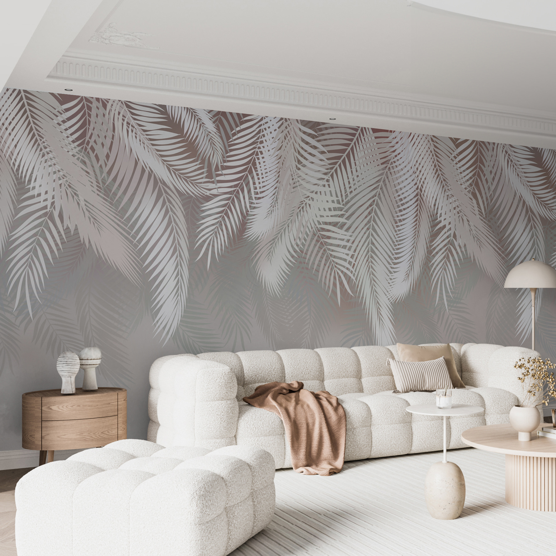 Sie möchten einen Raum ohne viel Aufhebens verschönern? Dann sehen Sie sich diese weißen Palmenblätter auf einem beigen Hintergrund an – damit holen Sie sich einen Hauch der Tropen direkt in Ihr Zuhause! Diese Fototapete wirkt sehr beruhigend, wie das sanfte Rauschen von Palmwedeln in einer leichten Brise. Stellen Sie sich vor, Sie kämen nach einem langen Tag nach Hause. Mit diesem Bild an der Wand würden Sie fast erwarten, den Ozean im Hintergrund zu hören.