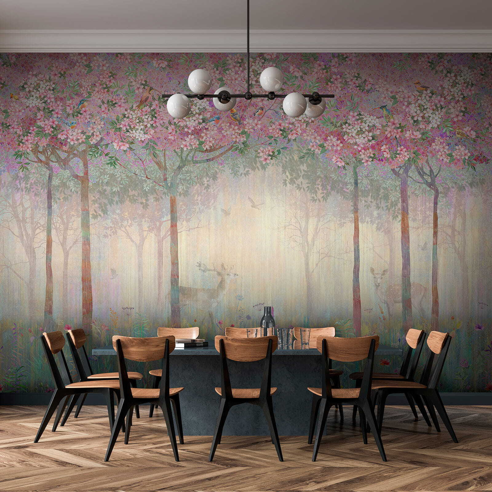 Verwandeln Sie jeden Raum in einen Zauberwald mit der Fototapete “Vögel auf einem Baum”. Diese Fototapete liegt genau im richtigen Bereich zwischen den Kategorien Kinder-Wandbilder, Beliebte Wandbilder und Holz-Wandbilder und verbindet Kunstfertigkeit mit einem Hauch von Laune. Stellen Sie sich die Freude eines Kindes vor, das einen Raum betritt, in dem Vögel in Kirschblüten zwitschern und Rehe zwischen den Blumen Guck-Guck spielen. Die sanften Farbtöne und die zarten Details geben Ihnen das Gefühl, in einen Traum einzutauchen. Perfekt, um die Fantasie anzuregen oder eine gewöhnliche Wand in eine Märchenszene zu verwandeln. Ideal für Kinderzimmer oder jeden Raum, der einen Hauch von Magie braucht. Es ist nicht nur eine Wandmalerei – es ist eine tägliche Inspiration. Egal, ob Sie Ihr inneres Kind ansprechen oder eine Oase für Ihre Kinder schaffen wollen, dieses Wandbild bringt Freude und Ruhe gleichermaßen. Denken Sie nur an die Gespräche und Geschichten, die es anregen könnte!