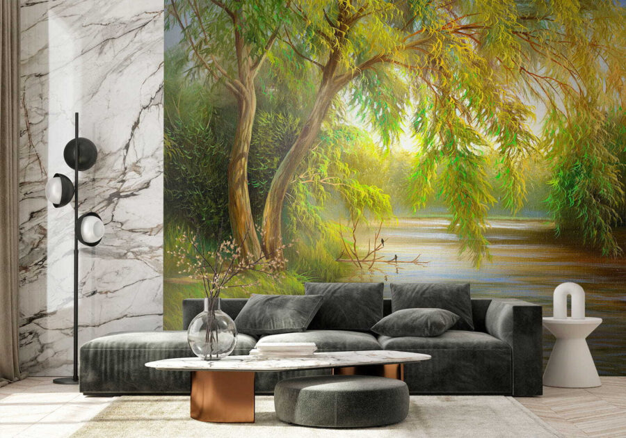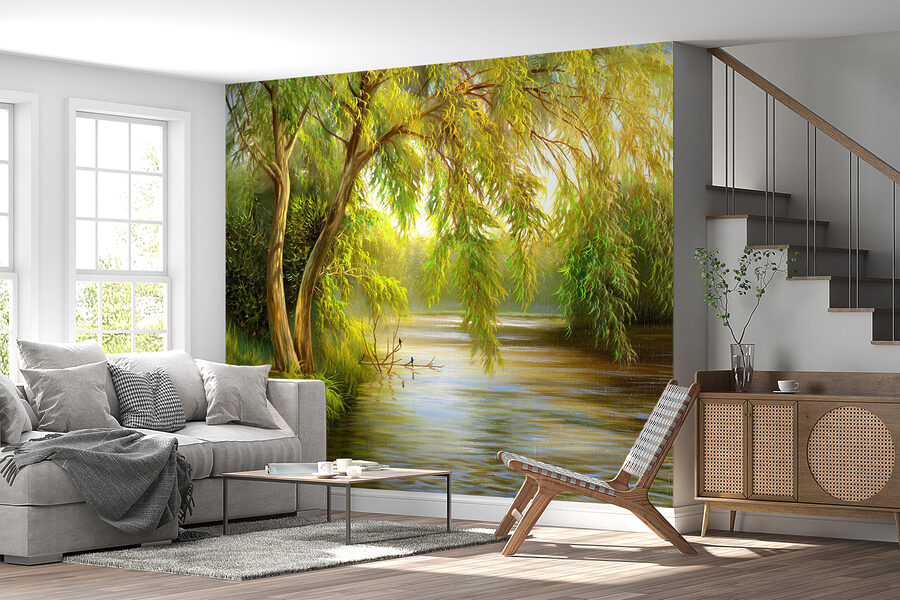 Verwandeln Sie Ihren Raum mit einem Wandbild, das Ihnen das Gefühl gibt, direkt in die Natur eingetreten zu sein. Dieses bezaubernde Design zeigt einen ruhigen Baum mit üppigem Grün und warmen, gelben Blättern, die das Licht der goldenen Stunde perfekt einfangen. Stellen Sie sich vor, wie Sie es sich in Ihrem Wohnzimmer gemütlich machen und einen Tee trinken, während diese Fototapete Geschichten aus der freien Natur flüstert. Es ist, als hätten Sie einen Mini-Wald direkt an der Wand, der die ganze erfrischende Atmosphäre ohne Ungeziefer einfängt! Ob in einer gemütlichen Sitzecke oder einem hellen Büro, dieses Wandbild lädt zu Ruhe und Inspiration ein. Wundern Sie sich nicht, wenn es Sie dazu verleitet, einen Garten anzulegen!