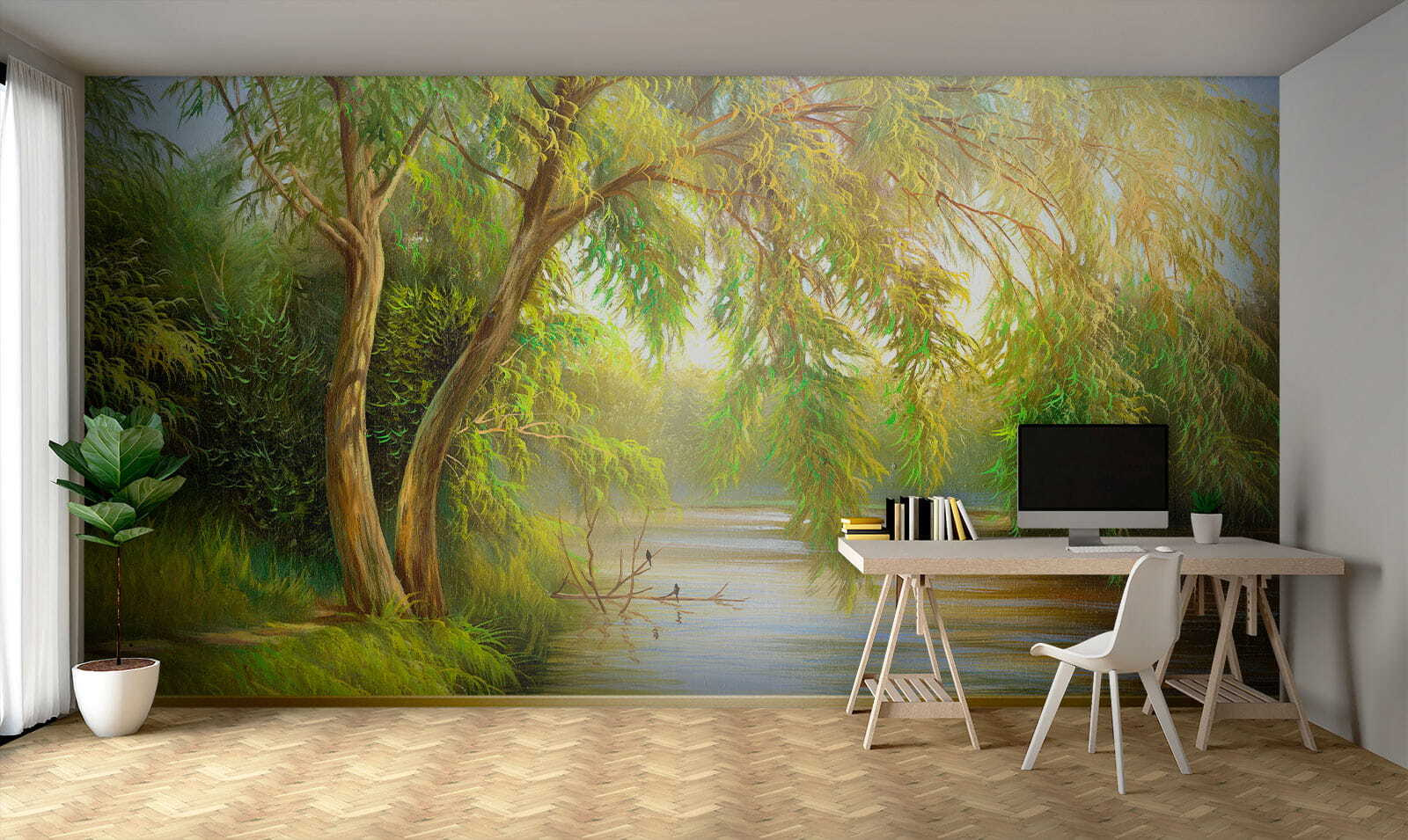 Verwandeln Sie Ihren Raum mit einem Wandbild, das Ihnen das Gefühl gibt, direkt in die Natur eingetreten zu sein. Dieses bezaubernde Design zeigt einen ruhigen Baum mit üppigem Grün und warmen, gelben Blättern, die das Licht der goldenen Stunde perfekt einfangen. Stellen Sie sich vor, wie Sie es sich in Ihrem Wohnzimmer gemütlich machen und einen Tee trinken, während diese Fototapete Geschichten aus der freien Natur flüstert. Es ist, als hätten Sie einen Mini-Wald direkt an der Wand, der die ganze erfrischende Atmosphäre ohne Ungeziefer einfängt! Ob in einer gemütlichen Sitzecke oder einem hellen Büro, dieses Wandbild lädt zu Ruhe und Inspiration ein. Wundern Sie sich nicht, wenn es Sie dazu verleitet, einen Garten anzulegen!
