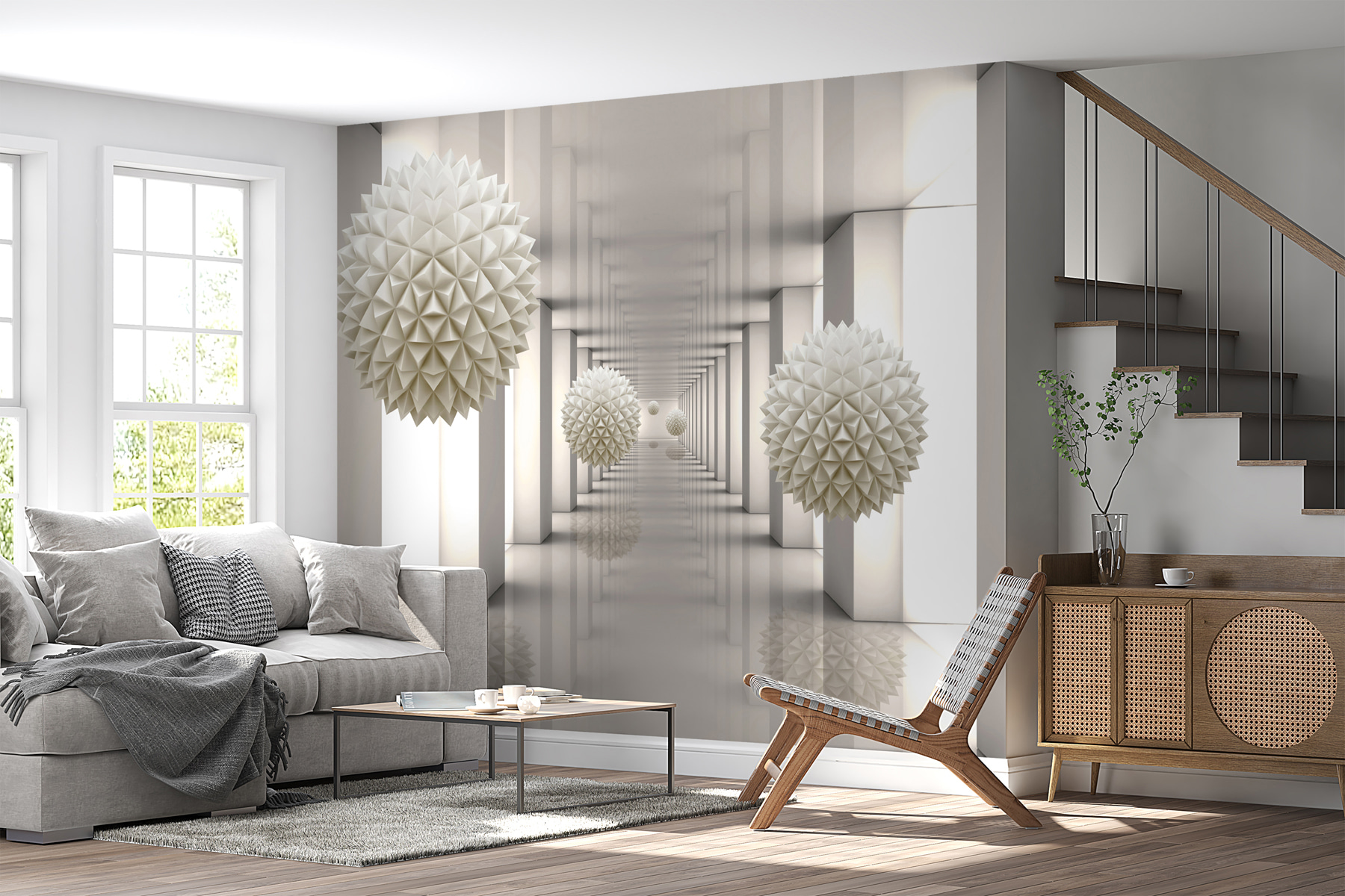 Stellen Sie sich vor, Sie treten in eine Welt ein, in der Kunst und Geometrie aufeinandertreffen. Genau das tut diese Fototapete “White Sphere with Triangles” – sie verwandelt Ihr Zimmer in eine schicke Galerie. Die 3D-Formen tauchen auf, als wären sie bereit, Sie zu begrüßen, Gespräche anzuregen und vielleicht sogar ein paar verträumte Tagträume zu inspirieren. Perfekt für alle, die genug von langweiligen Wänden haben und sich einen Hauch von modernem, künstlerischem Flair wünschen. Es ist, als würde man seinem Raum ein kleines Makeover verpassen, ohne einen einzigen Hammer zu schwingen – einfach nur ein optischer Genuss! Außerdem verleiht es eine raffinierte Ausstrahlung, ohne zu aufdringlich zu sein. Ideal, um Ihr Zimmer Instagram-tauglich zu machen!