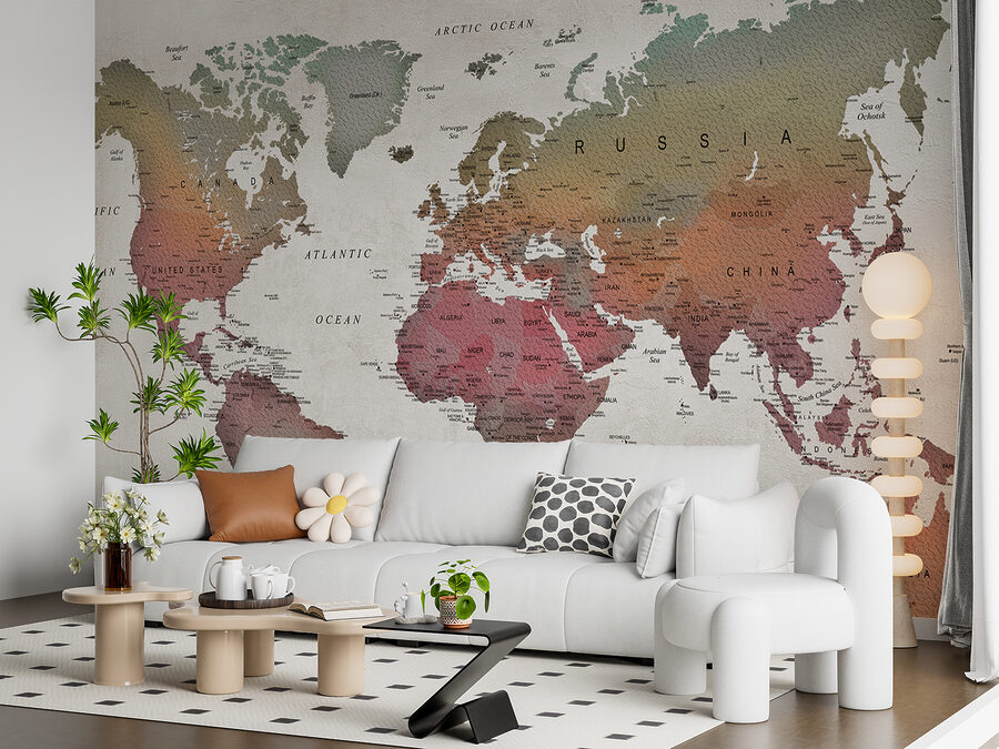 Verwandeln Sie Ihren Raum mit der Fototapeten Map of Australia. Dieses Kunstwerk ist nicht einfach nur eine Landkarte, es ist eine Einladung zum Entdecken und Träumen. Stellen Sie sich vor, Sie lehnen sich mit Ihrem Lieblingsgetränk zurück und betrachten die leuchtenden Farbmischungen, die jeder Wand einen geografischen Touch verleihen. Vielleicht bleiben Ihre Freunde stehen und fragen Sie nach Reisetipps, oder Sie fangen an, den Australien-Urlaub zu planen, von dem Sie schon immer gesprochen haben.