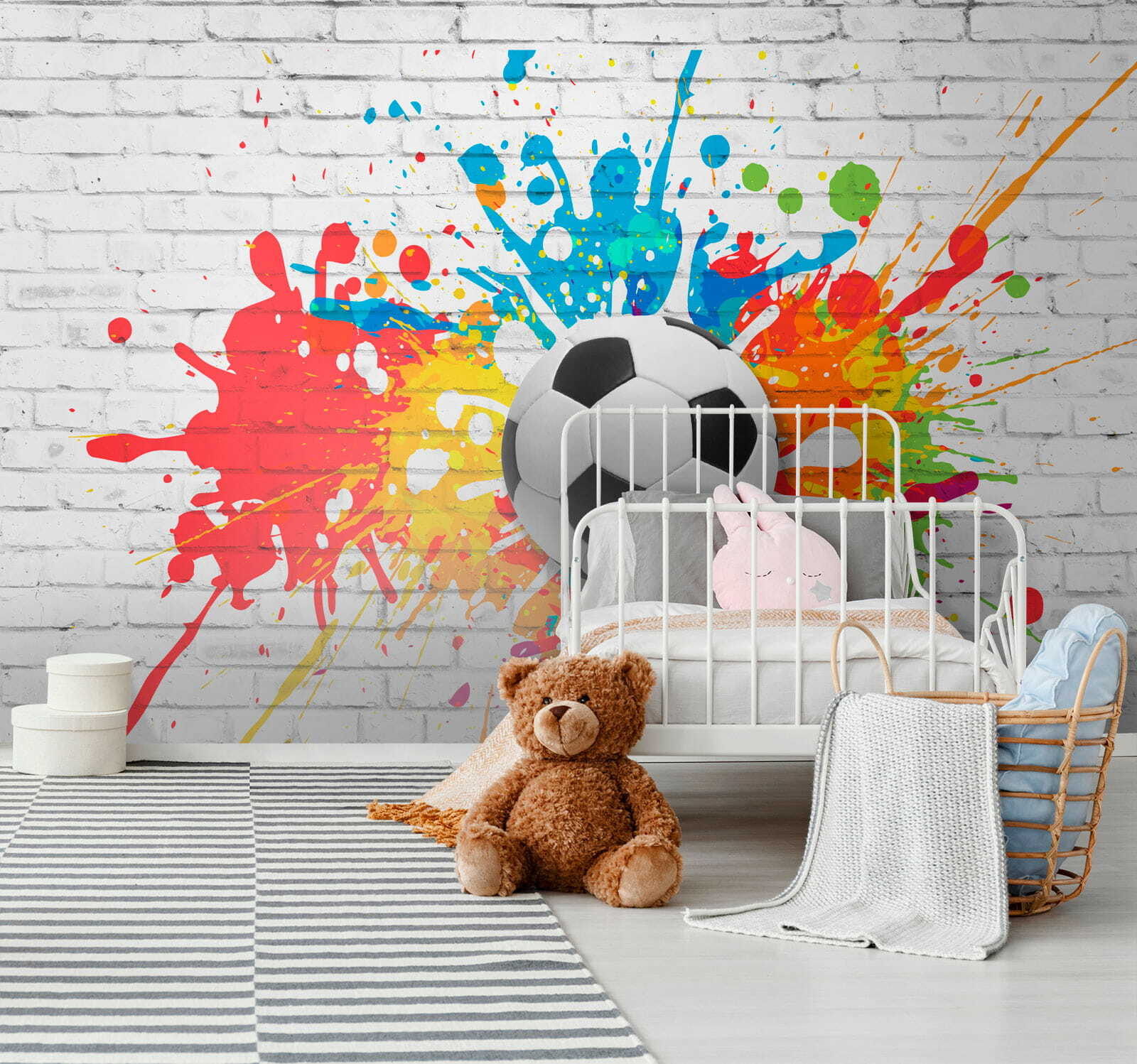 Stellen Sie sich das vor – ein lebendiger Farbspritzer, der vor einer weißen Backsteinwand explodiert, und mittendrin ein klassischer schwarz-weißer Fußball. Es ist, als hätte jemand das aufregendste Tor der Welt genommen und es direkt in Ihrem Wohnzimmer eingefroren. Diese Fototapete ist perfekt für ein Kinderzimmer, da sie die ganze Energie eines Stadions in eine einzige Wand packt. Die kräftigen Farben heben sich von dem monochromen Ball ab und schaffen einen spielerischen und auffälligen Kontrast. Ein 3D-Zauber, der das Spiel zum Leben erweckt! Stellen Sie sich die Begeisterung auf dem Gesicht Ihres Kindes vor, wenn es hereinkommt und dies sieht – eine tägliche Kulisse für seine Träume, das Siegestor zu schießen. Ob sie nun spielen oder einfach nur abhängen, dieses Wandbild bietet die perfekte Kulisse.