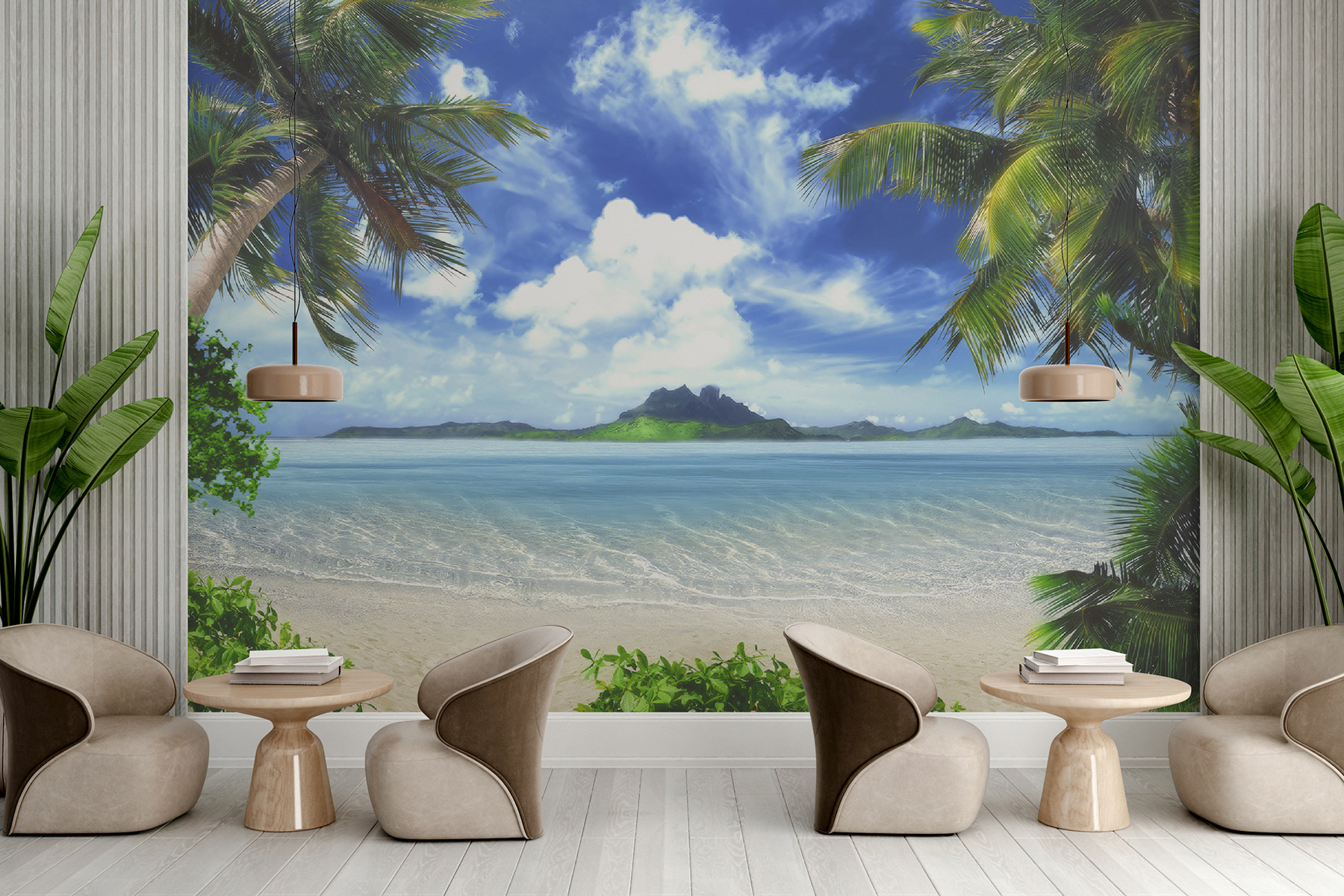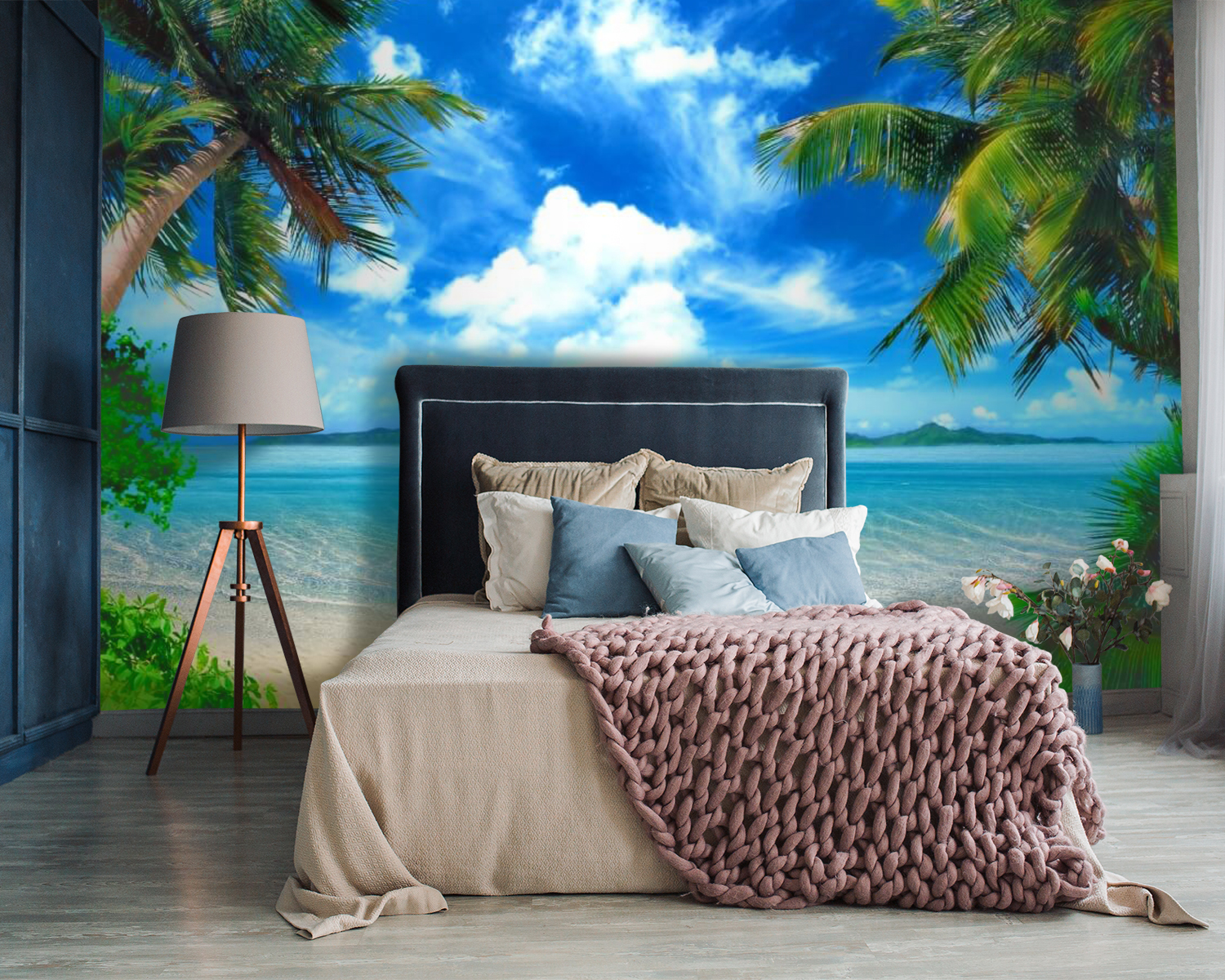 Verwandeln Sie Ihren Raum in ein kleines Stück vom Paradies mit diesem lebhaften tropischen Wandbild. Stellen Sie sich vor, Sie wachen mit dem Anblick von sanften Wellen auf, die an einen sonnenverwöhnten Strand plätschern, und Palmen, die sich in einer leichten Brise wiegen. Es ist wie ein Urlaub für Ihre Wände! Jeder Blick kann Sie an einen ruhigen Strand entführen und selbst Regentage zum Strahlen bringen. Diese Fototapete eignet sich perfekt für das Wohnzimmer, das Schlafzimmer oder jede andere Ecke, die einen Hauch von Freude braucht, und regt zu Tagträumen und Gesprächen an. Kombinieren Sie es mit etwas Küstendekoration und einem fruchtigen Getränk, und voilà – sofortiger Urlaub direkt zu Hause!