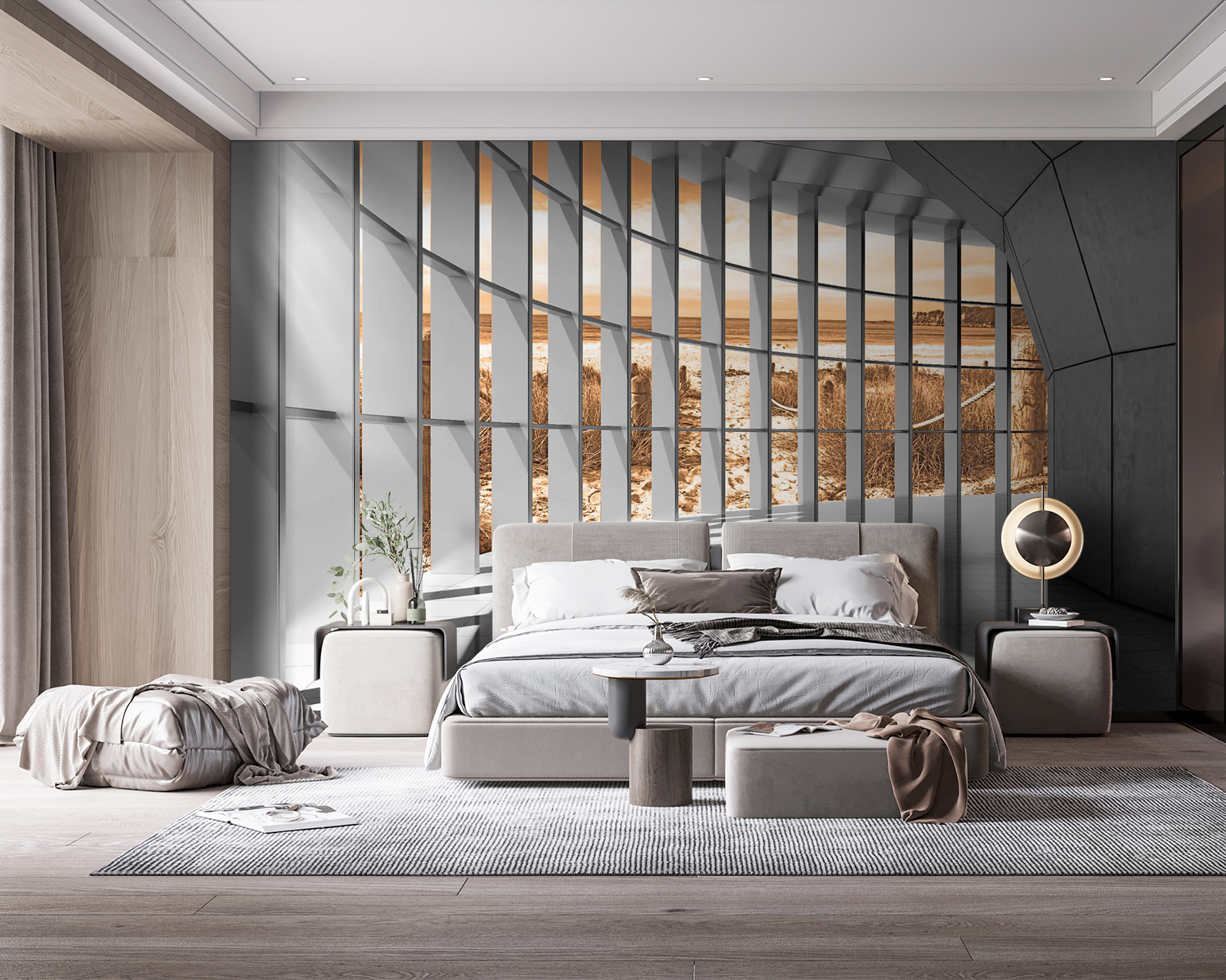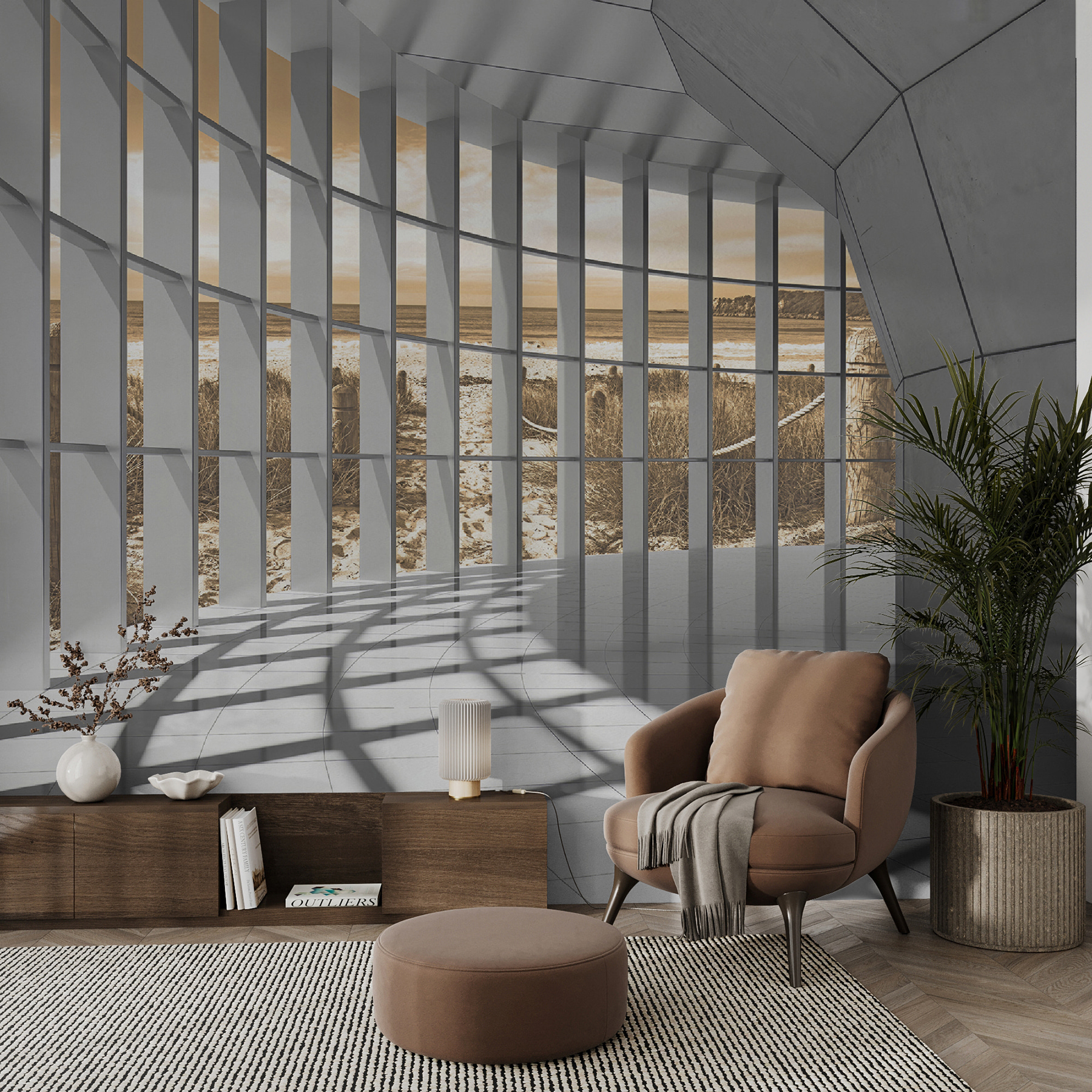 Verwandeln Sie jeden Raum in eine Oase des Lichts und der Perspektive mit dieser atemberaubenden Fototapete. Stellen Sie sich vor, Sie betreten einen großen Raum voller Fenster, von denen jedes einzelne die Sonne einlädt, über Ihre Wände zu tanzen. Das künstlerische Spiel der Schatten schafft ein warmes, gemütliches Gefühl, fast so, als wäre man an einem faulen Nachmittag in eine weiche Decke eingewickelt. Diese Fototapete eignet sich perfekt, um Gespräche anzuregen – die Gäste werden sich an einen verträumten Ort versetzt fühlen, während sie an ihrem Kaffee nippen. Ob im Wohnzimmer, im Schlafzimmer oder im Kreativstudio, diese Fototapete verleiht dem Alltag einen Hauch von Charme und Entfliehen, so dass sich die alltäglichen Momente noch ein bisschen besonderer anfühlen. Und wer liebt nicht einen freien Blick, wenn er im Haus festsitzt?