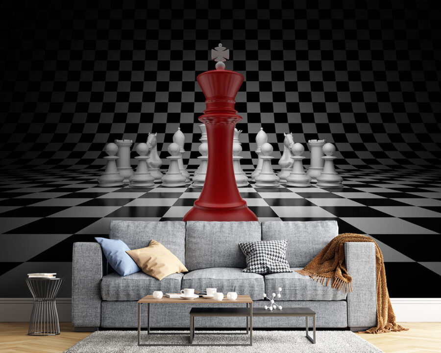 Verwandeln Sie eine Wand in ein kunstvolles Schlachtfeld mit dem “Fototapeten Red and White Chess Piece”. Dieses Wandbild ist nicht nur ein Design, es ist ein Statement. Stellen Sie sich vor: ein auffälliger roter König, der sich vor einem Meer von weißen Figuren auf einem klassischen schwarz-weiß karierten Hintergrund erhebt. Es ist, als ob Sie eine dramatische Schachpartie in Ihr Wohnzimmer einladen würden. Stellen Sie sich vor, wie Ihre Gäste staunen und sich fragen, warum sie das Gefühl haben, gerade eine Kunstgalerie betreten zu haben. Perfekt, um Gespräche oder sogar ein freundschaftliches Spiel bei einem Kaffee zu entfachen. Mit seinen kräftigen Farben wertet es jeden Raum auf und macht ihn lebendig und doch auf seltsame Weise anspruchsvoll. Ihre Wand ist bereit für den Siegerzug!