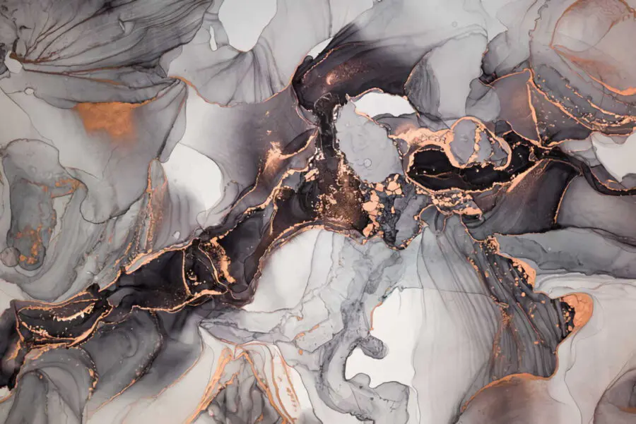 Verwandeln Sie Ihren Raum mit dieser atemberaubenden Fototapete mit abstrakter Tinte und elegantem Metallic-Design. Es ist, als hätte man ein Kunstwerk, das sich über die Wand erstreckt und zu Gesprächen und vielleicht sogar Tagträumen anregt. Stellen Sie sich vor, Sie betreten den Raum und spüren eine subtile Veränderung der Stimmung – eine Stimmung, die Sie dazu verleitet, es sich mit einem guten Buch gemütlich zu machen oder eine spontane Zusammenkunft zu veranstalten. Die sanften Wirbel und das künstlerische Flair laden zur Neugierde ein und lassen jeden Betrachter einen Moment innehalten – oder zwei. Dieses Wandbild ist nicht einfach nur Dekoration, sondern ein Erlebnis, das Kreativität und Laune anregt und Ihre Wände zum Leben erweckt. Perfekt für alle, die das Unerwartete schätzen!
