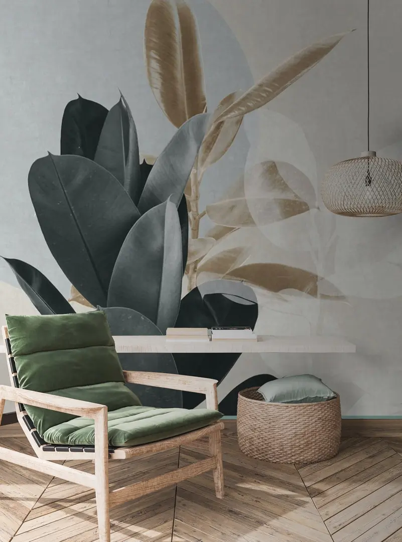 Verwandeln Sie Ihren Raum mit dieser atemberaubenden Fototapete, die eine sanfte Reihe von Blättern in weichen, gedämpften Tönen zeigt. Stellen Sie sich vor, Sie betreten einen Raum, der sich wie ein gemütlicher Rückzugsort im Wald anfühlt, in dem die Blätter praktisch Geschichten der Ruhe flüstern. Die Mischung aus Blautönen und sanften Erdtönen schafft eine einladende Atmosphäre, die perfekt zur Entspannung oder kreativen Inspiration geeignet ist. Es ist wie ein Hauch von frischer Luft – nur ohne Ungeziefer und matschige Schuhe. Ob im Wohnzimmer, im Schlafzimmer oder im Büro, diese Fototapete verleiht einen Hauch von natürlichem Charme und lässt selbst Regentage ein wenig heller erscheinen. Spüren Sie, wie die Ruhe über Sie hereinbricht, während das elegante Design Ihre Einrichtung mühelos aufwertet und jede Wand in eine heitere Zuflucht verwandelt.