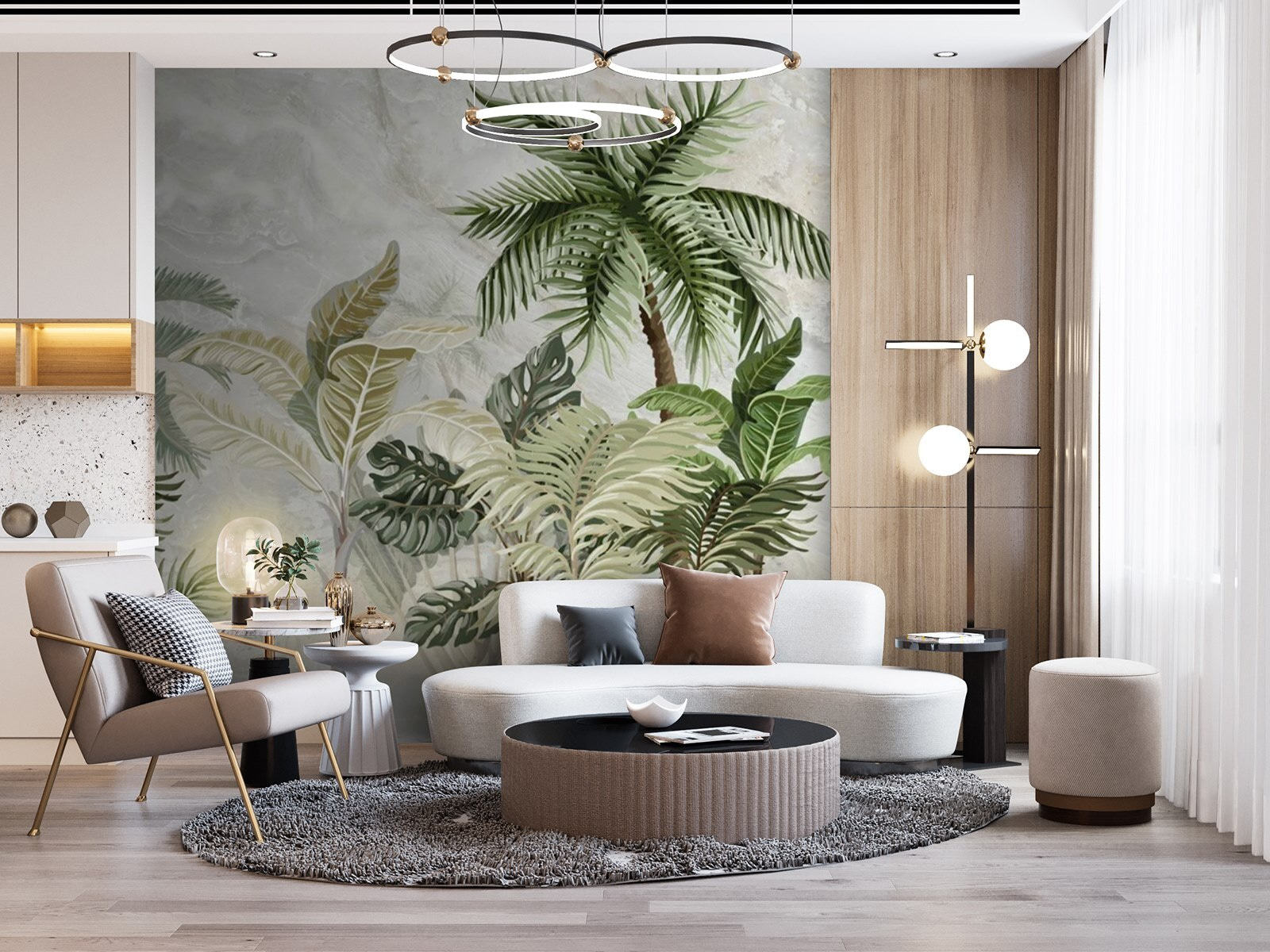 Verwandeln Sie jeden Raum in einen tropischen Zufluchtsort mit dieser atemberaubenden Fototapete mit üppigem Blattwerk auf einem weichen Hintergrund. Stellen Sie sich vor, dass Sie jedes Mal, wenn Sie Ihren Raum betreten, in eine heitere Dschungeloase eintreten. Die leuchtenden Grüntöne und die subtilen Details sorgen für eine erfrischende Atmosphäre, die sich perfekt für entspannte Abende oder lebhafte Zusammenkünfte eignet. Stellen Sie sich vor, Sie nippen an Ihrem Lieblingsgetränk, während Sie von der Natur umgeben sind – natürlich ohne die Moskitos. Es ist Kunst, die Ihren Wänden Leben einhaucht und einen einzigartigen Touch verleiht, der Freude und Gespräche anregt. Wer hätte gedacht, dass man sich die Tropen so gut nach Hause holen kann?