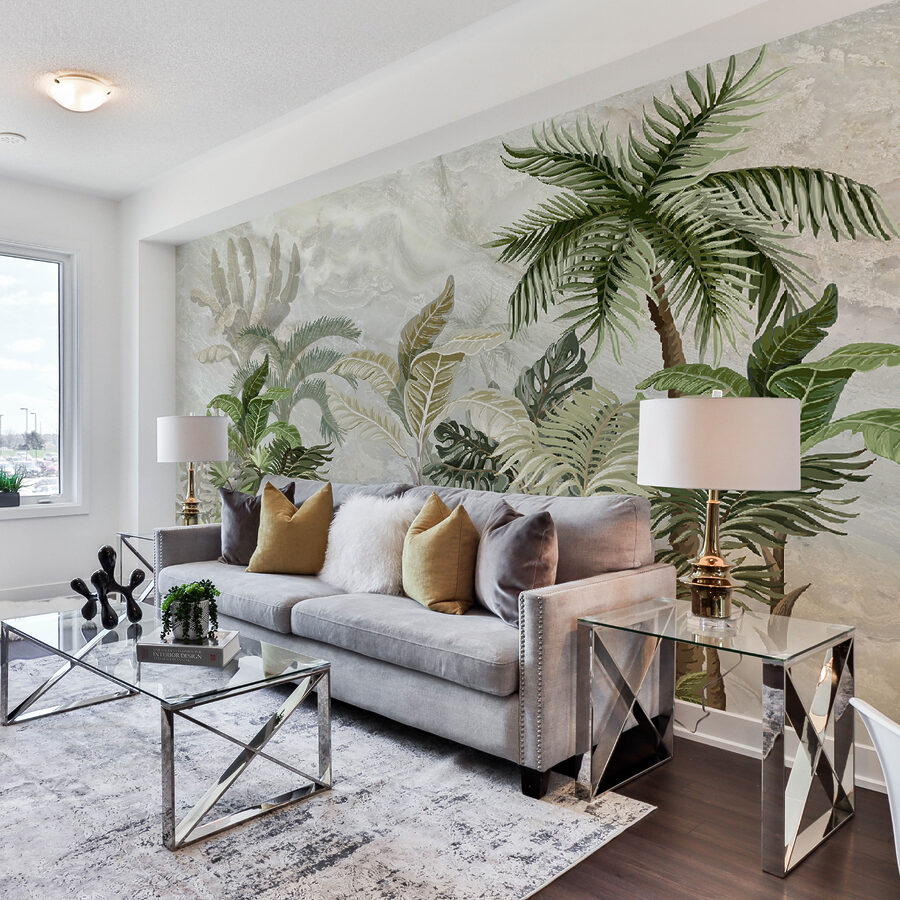 Verwandeln Sie jeden Raum in einen tropischen Zufluchtsort mit dieser atemberaubenden Fototapete mit üppigem Blattwerk auf einem weichen Hintergrund. Stellen Sie sich vor, dass Sie jedes Mal, wenn Sie Ihren Raum betreten, in eine heitere Dschungeloase eintreten. Die leuchtenden Grüntöne und die subtilen Details sorgen für eine erfrischende Atmosphäre, die sich perfekt für entspannte Abende oder lebhafte Zusammenkünfte eignet. Stellen Sie sich vor, Sie nippen an Ihrem Lieblingsgetränk, während Sie von der Natur umgeben sind – natürlich ohne die Moskitos. Es ist Kunst, die Ihren Wänden Leben einhaucht und einen einzigartigen Touch verleiht, der Freude und Gespräche anregt. Wer hätte gedacht, dass man sich die Tropen so gut nach Hause holen kann?