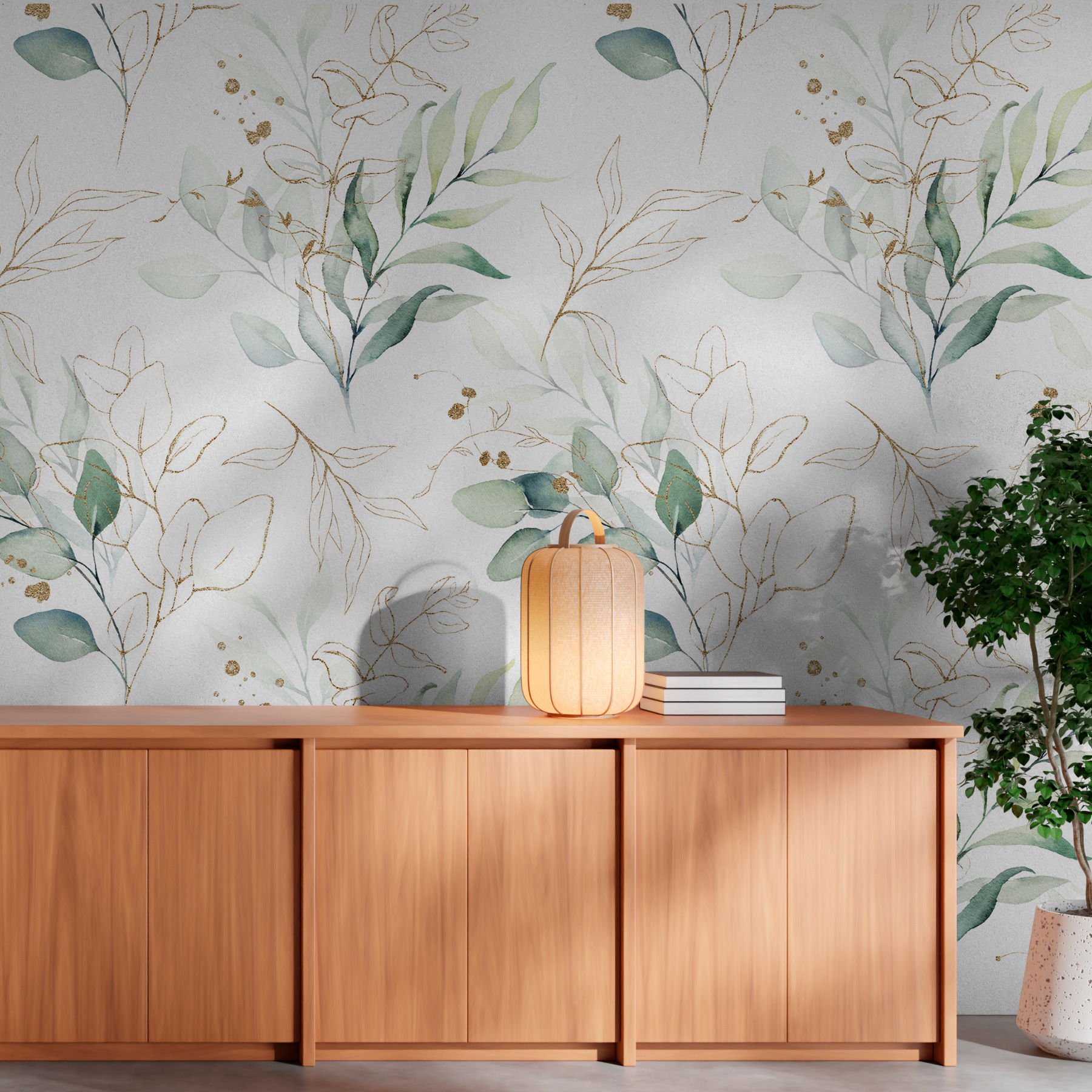 Verwandeln Sie jeden Raum in eine heitere Oase mit dieser Fototapete mit einem atemberaubenden botanischen Aquarell-Blattmuster. Stellen Sie sich vor, Sie wachen in der sanften Umarmung von üppigem Grün auf und bringen einen Hauch von frischer Luft in Ihren Raum. Die sanften Farbtöne tanzen wunderschön und erwecken das friedliche Gefühl eines Spaziergangs durch einen sonnenbeschienenen Wald. Perfekt für die Tage, an denen sich die Natur unerreichbar anfühlt, holt dieses Wandbild sie direkt ins Haus. Es ist, als würde man einen Garten einladen – ohne die Gießkanne. Ob in einer gemütlichen Ecke oder einem lebhaften Wohnzimmer, es verleiht einen Hauch von ruhigem Charme, dem man nur schwer widerstehen kann. Sie werden ihn nicht nur sehen, sondern auch spüren, wie er sich wie eine warme Umarmung an einem kühlen Tag um Ihr Haus legt. Ein kleiner Hauch von Natur kann viel bewirken, finden Sie nicht auch?