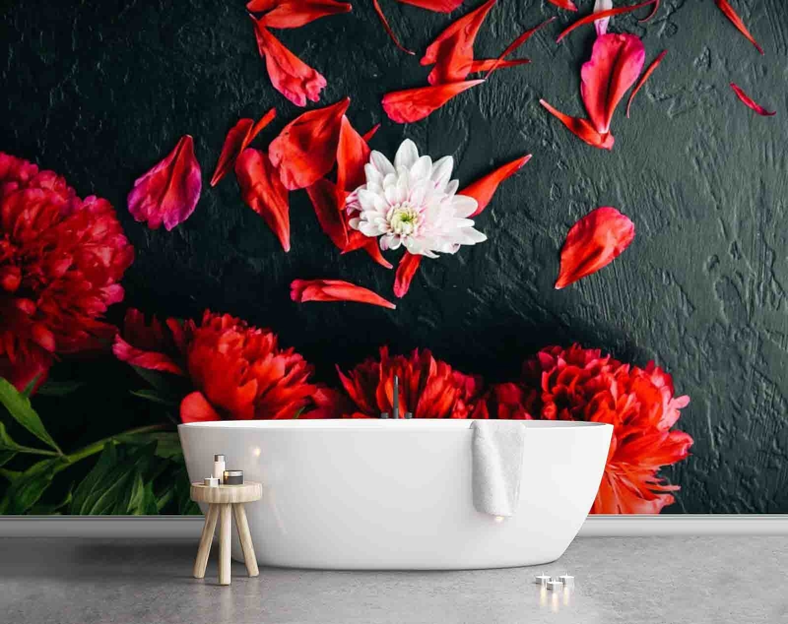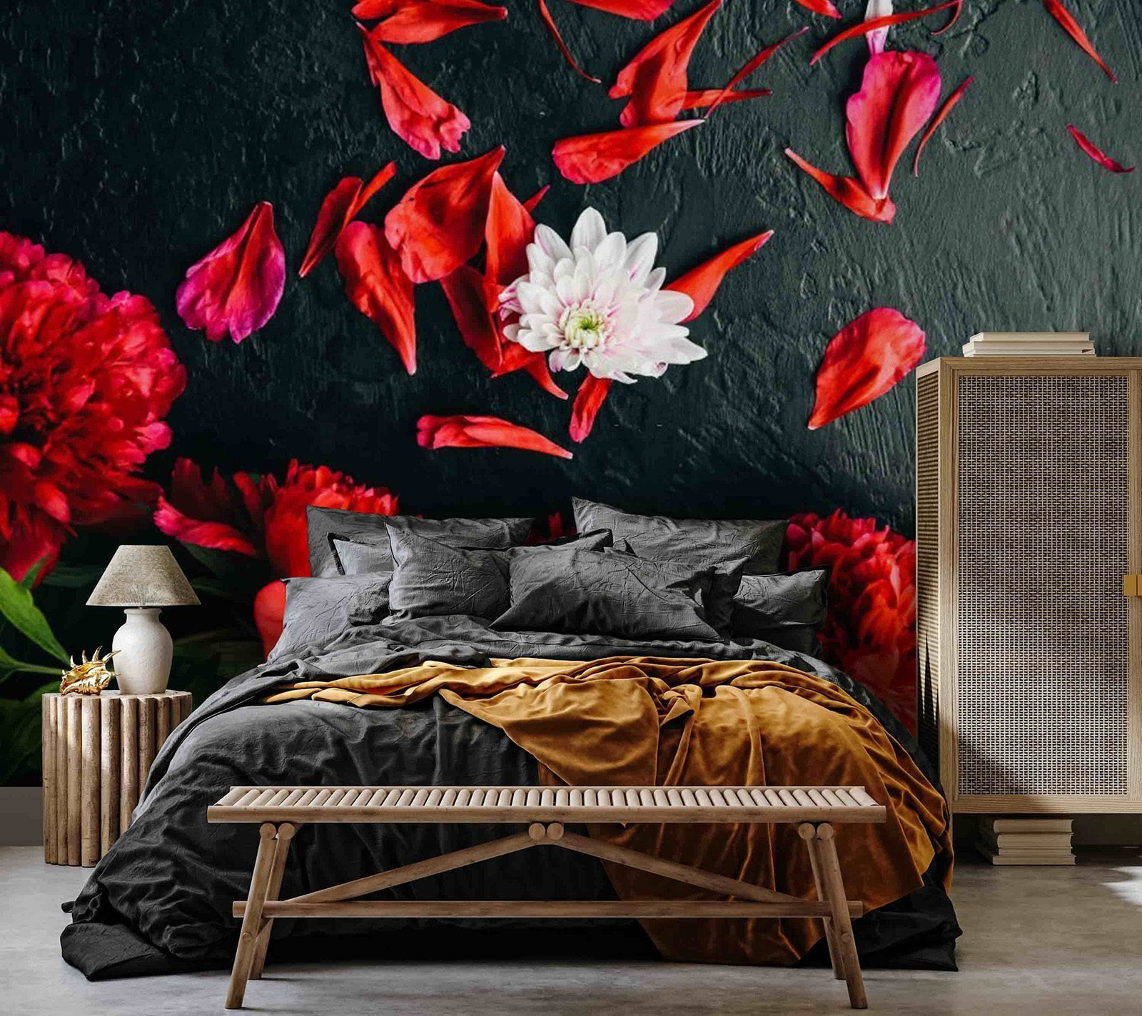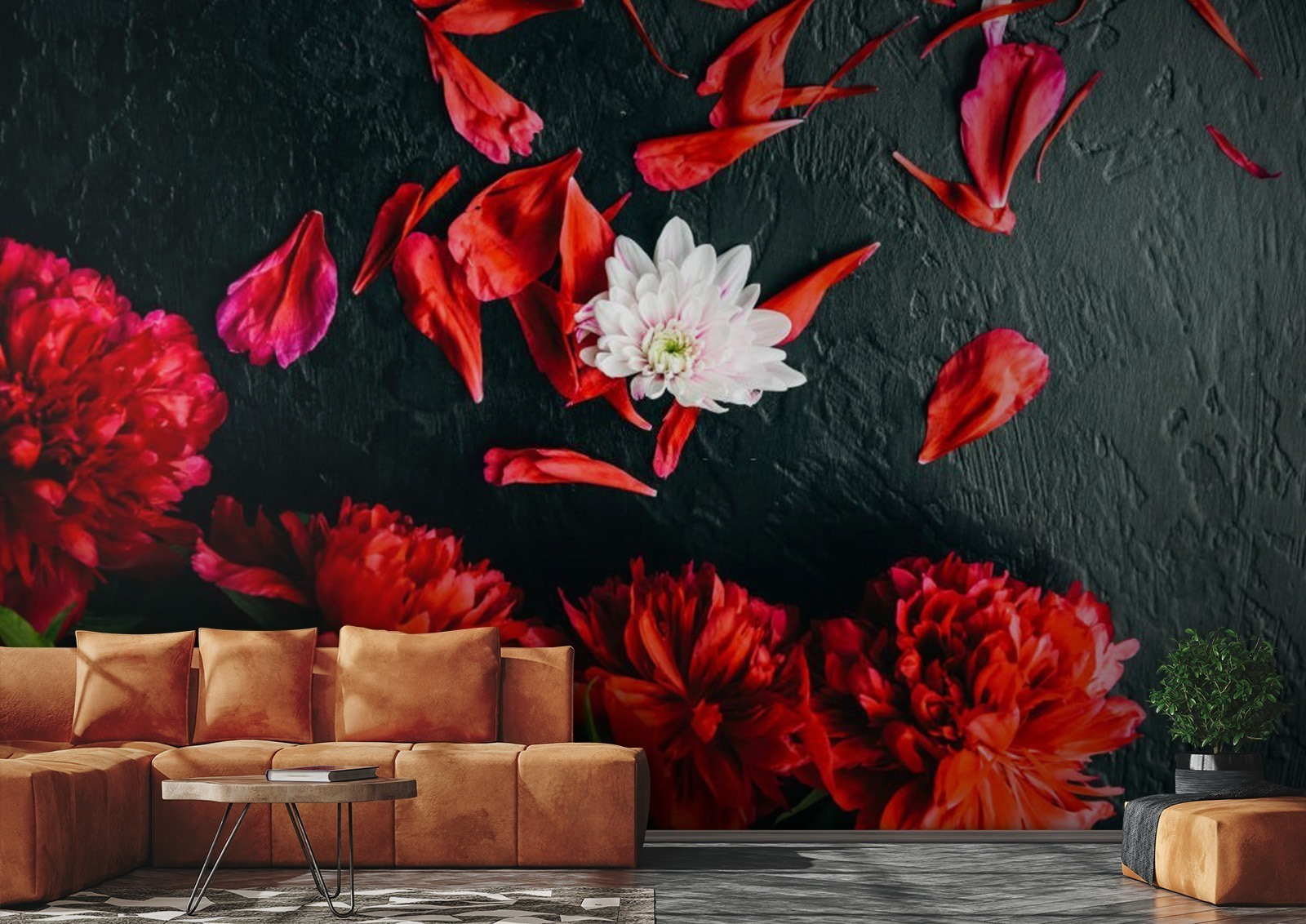 Verwandeln Sie Ihren Raum mit dieser atemberaubenden Wandtapete, die eine lebhafte Gruppe roter Pfingstrosen vor einem schicken schwarzen Hintergrund zeigt. Es ist, als würde man einen Garten ins Haus holen – ohne die lästigen Insekten! Stellen Sie sich vor, Sie wachen jeden Tag mit diesen üppigen Blüten auf, deren kräftige Farben in jedem Raum Freude und Wärme verbreiten. Der Kontrast der feurigen Blütenblätter vor einem dunklen Hintergrund ist einfach beeindruckend; es ist ein bisschen so, als würde man in einem gemütlichen Café Kaffee trinken, wo die Atmosphäre einen wie eine Umarmung umgibt. Perfekt für ein Wohnzimmer oder vielleicht ein trendiges Büro; wer würde nicht gerne inmitten solcher Schönheit arbeiten? Mit dieser Wandtapete dekorieren Sie nicht nur, Sie schaffen ein Erlebnis. Jeder Blick darauf wird Sie ein bisschen mehr inspirieren!