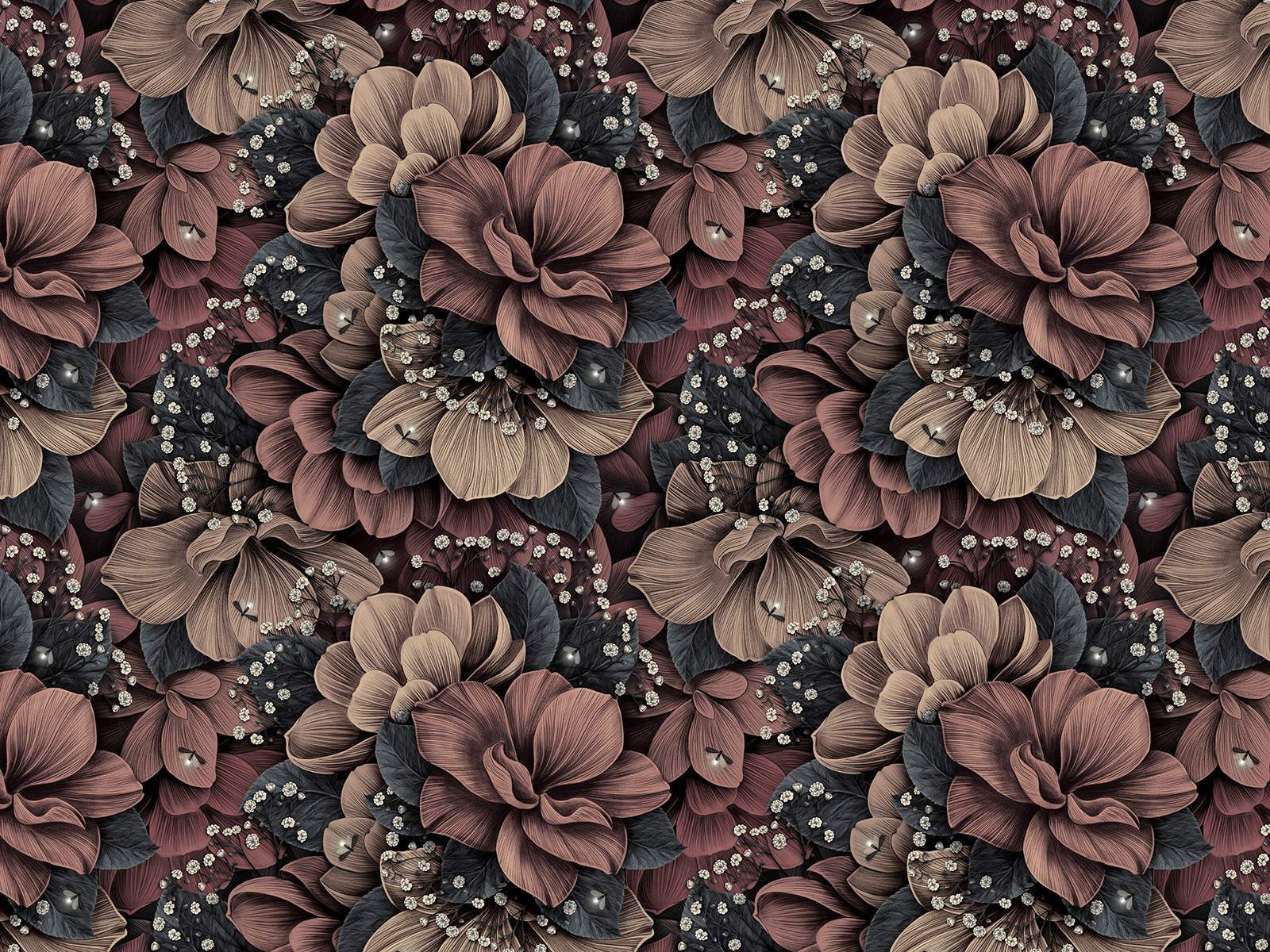 Stellen Sie sich dies in Ihrem Wohnzimmer vor: ein elegantes, detailliertes Blumenmuster, das Sie den ganzen Tag anstarren möchten. Dieses Wandbild hat ein warmes, kompliziertes Design, das fast lebendig wirkt. Die satten Farben mischen sich wunderbar und schaffen ein Gefühl von Tiefe, das Sie in den Bann zieht. Es ist, als hätte man einen üppigen Garten direkt an der Wand, ohne dass man ihn gießen muss.